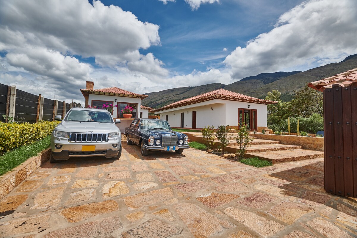 Վիլլա դե լոս Խուանեսը կատարյալ հանգիստ է հանգստանալու և բնության հետ շփվելու համար: Մեր հարմարավետ տունն առաջարկում է երկու առանձին սենյակ ՝ երկտեղանի մահճակալներով, ճաշասենյակ, լոգասենյակ ՝ էլեկտրական ցնցուղով, աշխատանքային ուսուցում, լիովին կահավորված խոհանոց, բացօթյա պատիո ՝ խորովածով, առանձին կայանատեղի և 3,400 քառակուսի մետր կանաչ տարածք ։ Մենք տրամադրում ենք արագ Wi - Fi, հեռուստատեսություն, գրքեր և սեղանի խաղեր ։ Թույլ տվեք ձեզ հմայել այն խաղաղությամբ, որը ոգեշնչում է այս գեղեցիկ վայրը: Վիլլա դե Լեյվայից (5 կմ) ընդամենը 10 րոպե հեռավորության վրա ։