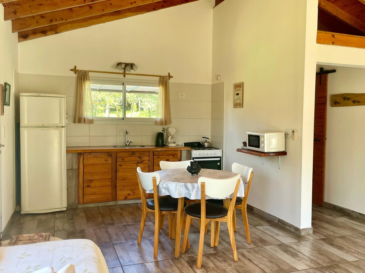 Մեր հարմարավետ տնակը շրջապատված է բնությամբ, իդեալական է առօրյայից անջատվելու համար ։ Մենք ունենք 8000 մ2 մակերեսով զբոսայգի ՝ կարոբներով, շանարներով, սպինիլոներով, ի թիվս այլոց ։ Դուք կարող եք տեսնել բնիկ թռչուններ, աղվեսներ, նապաստակներ... Մենք ընդամենը 5 րոպե հեռավորության վրա ենք Վիլլա Գեներալ Բելգրանո կենտրոնից և 10 րոպե հեռավորության վրա Լոս Ռեարտես գետից: