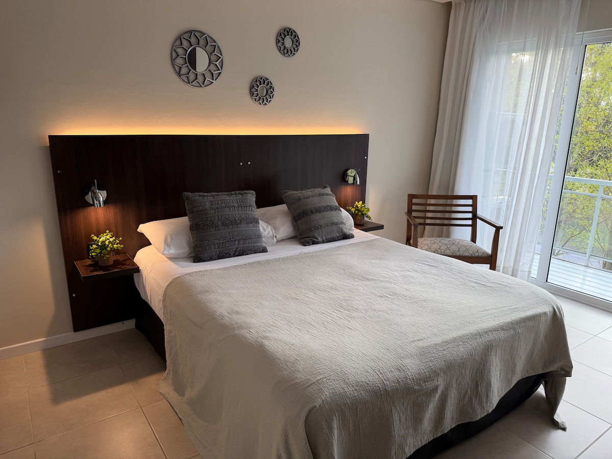 Relájate en un complejo excepcional con todas las comodidades. Monoambiente sin cocina con baño privado. Cuenta con heladera, pava eléctrica y utensilios para dos personas. Aire acondicionado, tv x cable (pack futbol) e internet wifi. No incluye desayuno. Incluye ropa blanca y toallas para pileta (limpieza para estadías de más de 6 noches). Piscina exterior e interior climatizada. Salón de juegos. Parrilla a gas de uso compartido (con reserva de turno y costo adicional).