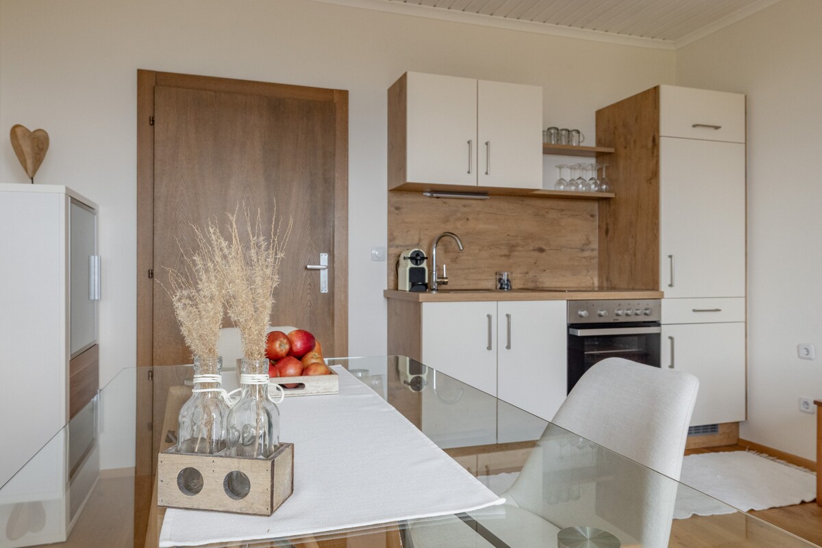 Բնակարան սաունայով և ջակուզիով լոգարանով: Բարի գալուստ այս հանգիստ և ոճային կացարան Հիմելբերգում կամ Կարինտիայում գտնվող Landhaus Grünjuwel - ում ։ 80 քմ - ից ավելի հեռավորության վրա կարող եք վայելել ձեր ինքնասպասարկման հանգիստը հանգիստ վայրում ։ Ննջասենյակ երկտեղանի մահճակալով, բաց կենդանի խոհանոց ՝ բազմոցով (կտրտված հիմքով, երկտեղանի մահճակալի չափ), մեծ լոգասենյակ ՝ անկյունային լոգարանով, ներս մտնող ցնցուղով և երկտեղանի ունայնությամբ և ինֆրակարմիր տնակով, հարմարավետ նախասենյակով և փայտե գեղեցիկ կտուրով ։ Առավելագույնը 4 հյուրի համար նախատեսված տեղ ։