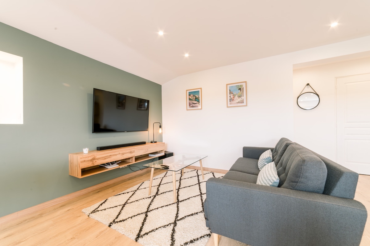 Vous profiterez d'un appartement élégant, en cœur de bastide royale dans l'Aveyron, proche d'un parc verdoyant. Vous aurez à disposition un parking à proximité gratuit donnant un accès au centre ville, avec un arrêt bus desservant la ville gratuitement. Vous trouverez un espace accueillant avec des poutres apparentes et un espace convivial à l'extérieur à l'abri des regards. Vous pourrez découvrir la bastide à pied avec ses atouts (Chartreuse, les Pénitents Noirs, la Collégiale, ...).