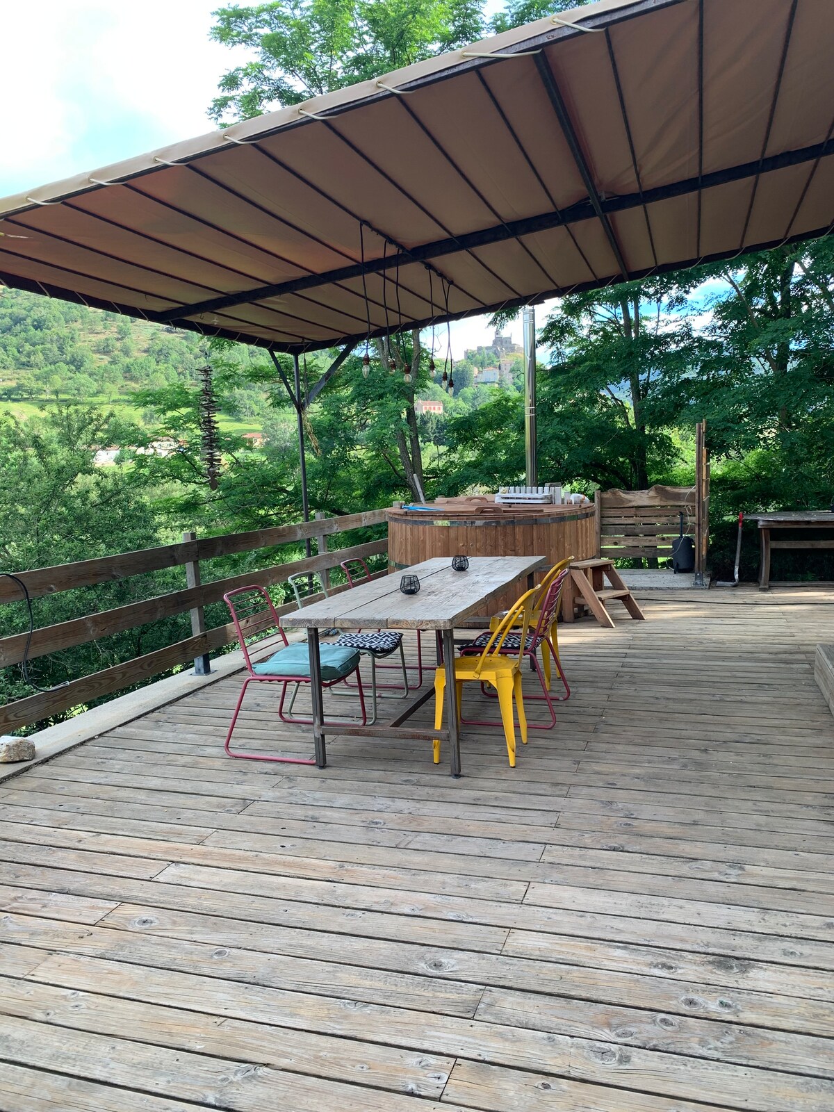 Շքեղ ծառի տնակ Օվերնում ՝ 2 -4 հյուրի համար, որը կատարյալ է զույգերի կամ փոքր ընտանիքների համար ։ Կլերմոն - Ֆերանից ընդամենը 45 րոպե հեռավորության վրա և Լիոնից 2 ժամ հեռավորության վրա ։ Մասնավոր ջակուզի ՝ ծածկված, մեկուսի կտուրում (հայտարարված և համապատասխանում է Ֆրանսիայի առողջապահական մարմնի ստանդարտներին )։ Լիովին ջեռուցվող և օդորակված ՝ ամբողջ տարվա հարմարավետության համար ։ Ներառված են տնական նախաճաշեր, տնակային ճաշկերույթներ ՝ մեկ անձի համար 22 € - ից ։