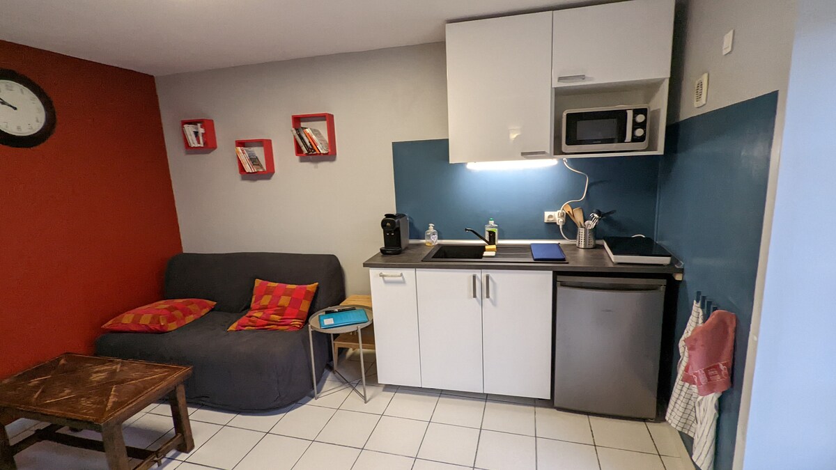Մեր 33մ² մակերեսով նորակառույց տարածքն ունի օդորակիչ և գտնվում է Դիժոնի հմայիչ, պատմական կենտրոնից ։ Մեր տան հետևի առանձին փոքր շենքում դուք կունենաք ձեր սեփական հյուրասենյակը/խոհանոցը, առանձին ննջասենյակը և լոգասենյակը: Տան դիմաց կա անվճար հանրային կայանատեղի փողոցում ։ Դուք անմիջապես կլինեք Palais des Congrès - ի և Auditorium - ի հարևանությամբ, և տրամվայով կարճ ուղևորություն դեպի երկաթուղային կայարան, համալսարան և հիվանդանոց ։ Մոտակայքում կան սուպերմարկետներ և այլ խանութներ ։ Nous parlons également français.