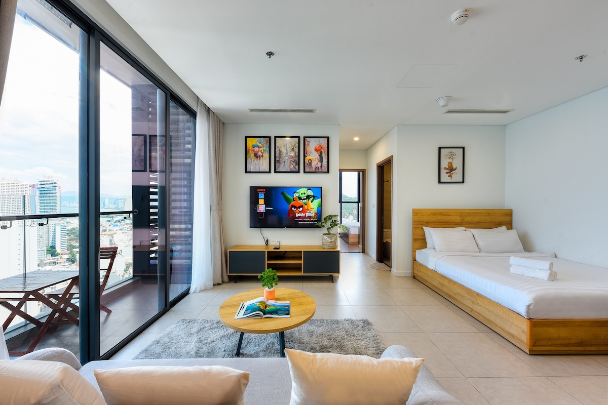 Ծովի տեսարանով և քաղաքային տեսարանով բնակարան 52 քմ, որը գտնվում է Նհա Տրանգ քաղաքի կենտրոնում և գտնվում է օդանավակայանի կանգառում: Այս բնակարանը գտնվում է ժամանակակից շենքի ներսում ՝ առևտրի կենտրոնով, և ոտքով ընդամենը 2 րոպե է մինչև լողափ, կինոթատրոններ, սուպերմարկետ, փաբեր, գիշերային շուկա, 5 աստղանի հյուրանոցներ, ինչպիսիք են I ntercontinental - ը, Sheraton - ը, Sunrise - ը,.. Մենք ունենք լիարժեք զվարճանք և հարմարավետություն: Իսկապես հրաշալի է և վայելեք ձեր հանգիստը շատ լավ օդով: