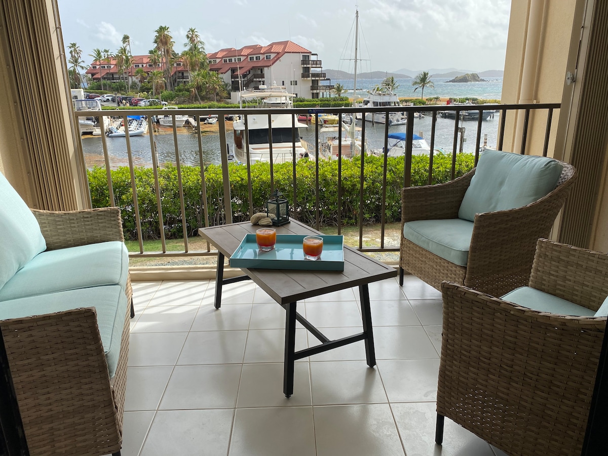 "H2Oh What a Beach!" condo Building A of Sapphire Beach Resort & Marina: ground floor unit with direct access to one of the most beautiful beaches in the Caribbean. Steps away from Sea Salt fine dining restaurant, Sapphire Beach Bar, Paradise Pie pizza, and Beach Buzz coffee shop. A mile from Red Hook featuring many restaurants & island ferries. Great beach, swimming, snorkeling, parasailing, and relaxing right outside your door. Check out our reviews - there's a reason why we're always full!