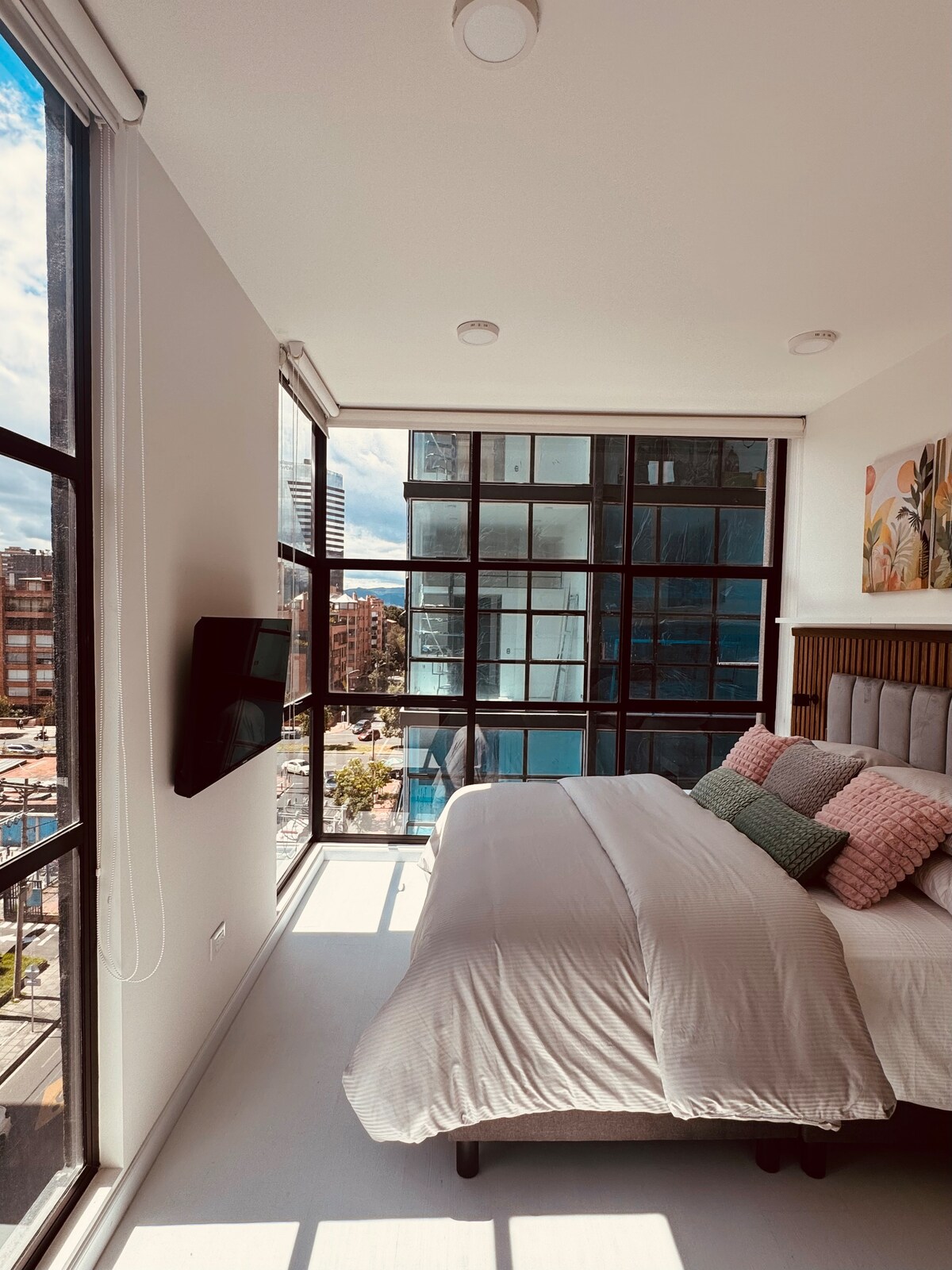 Ժամանակակից բնակարան նոր շենքում (2025 թվական), մեկ ննջասենյակով և Բոգոտայի Վիրեյ թաղամասի գեղեցիկ տեսարանով։ Դուք զույգով կամ ձեր ընտանիքի հետ կվայելեք ամբողջությամբ կահավորված շքեղ տարածք, լոգասենյակ-զուգարան և հյուրասենյակի լոգասենյակ, սմարթ հեռուստացույց, լվացքասենյակ, արագ Wi-Fi, աշխատանքային տարածք, տպավորիչ խոհանոց՝ ձեր այցի համար անհրաժեշտ բոլոր սարքերով, շենքում կունենաք համատեղ աշխատանքային տարածք։ Դուք ընդամենը մի քանի քայլ հեռու եք Վիրեյ զբոսայգուց։