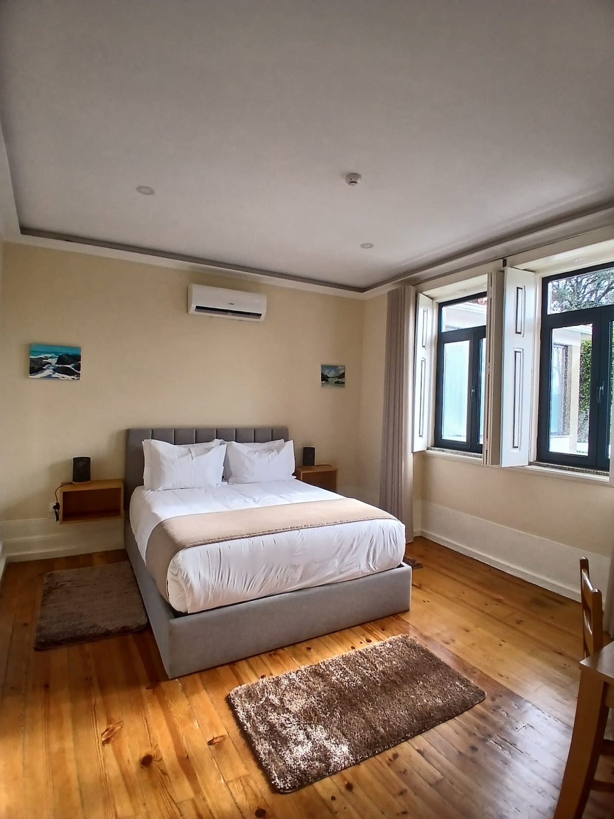 Quarto acolhedor e totalmente preparado para receber casais ou viajantes que procuram conforto e tranquilidade durante a sua estadia. Destaca-se pelo ambiente luminoso, decoração cuidada e mobiliário confortável, criando um espaço ideal para descansar após um dia de passeio ou trabalho.