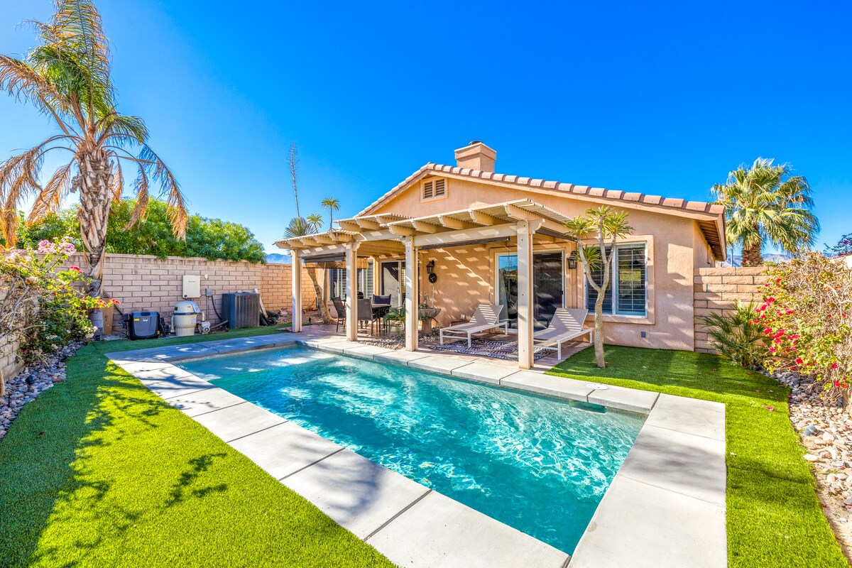 Welcome to Hollywood House. Located in Indian Palms Country Club this little bungalow is perfect for a relaxing stay. Sweet private backyard is great for morning coffee and afternoon BBQ's. The newly installed pool is ready for a dip. The game room area comes complete with a custom made bar for enjoying a drink and snacks with your billiard game.