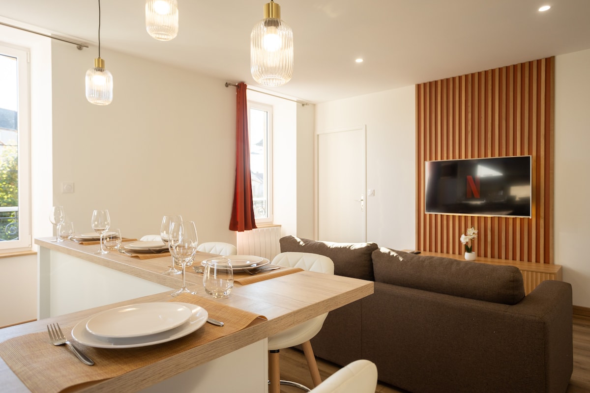 Envie de rendre votre séjour à Digoin INOUBLIABLE et CHARMANT ? → Vous êtes à la recherche d'un appartement bien placé (Proche du PARC LE PAL) et de qualité Découvrez le Cocon Digoinais, logement de 40m2 entièrement rénové et meublé ! → Appartement COSY ENTIEREMENT rénovée → 4 COUCHAGES avec 1 lit double et 1 canapé lit double convertible → PARKING au pied de l’appartement gratuit → WIFI INTERNET HAUT DÉBIT → TV HD avec Abonnement NETFLIX → MACHINE À CAFÉ NESPRESSO, BOUILLOIRE, GRILLE-PAIN