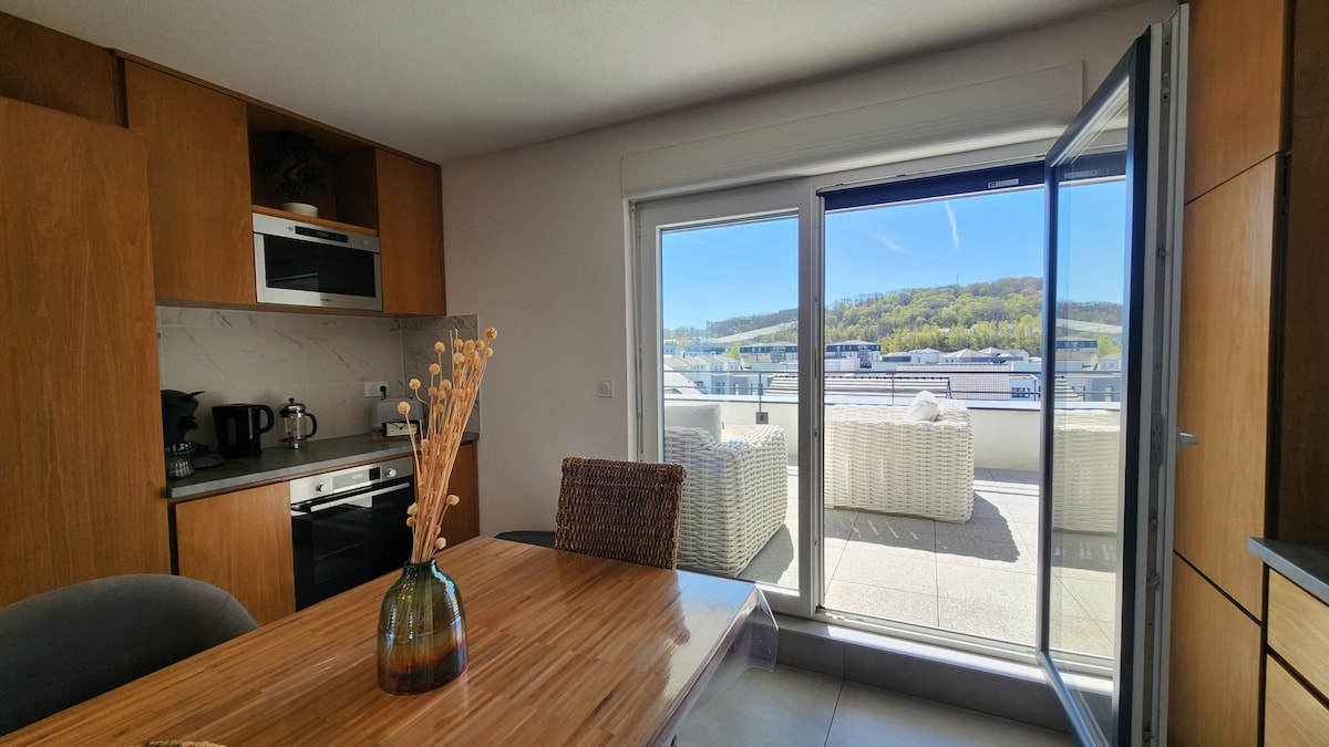 **Հմայիչ F1 ընդարձակ տեռասով ՝ Ամնեվիլի քաղաքապետարանի մոտ** 🛋️ Հարմարություններ հատուկ կարիքներով անձանց համար**. մոտակայքում գտնվող A31 ավտոմայրուղին և Լյուքսեմբուրգը սահմանակից են մի քանի կիլոմետր հեռավորության վրա, ինչը հեշտացնում է տեղաշարժը ։ Բարի գալուստ այս գեղեցիկ F1 բնակարան ՝ համեղ ձևավորված և լիովին կահավորված հարմարավետ հանգստի համար ։ Գտնվելով հանգիստ տարածքում ՝ այս բնակարանն առաջարկում է ընդարձակ տեռաս, որն իդեալական է մեկօրյա ուսումնասիրությունից հետո հանգստանալու համար ։ ✨ Հենց հիմա՝ կենդանաբանական այգու լուսադիոդային ցուցիչներ