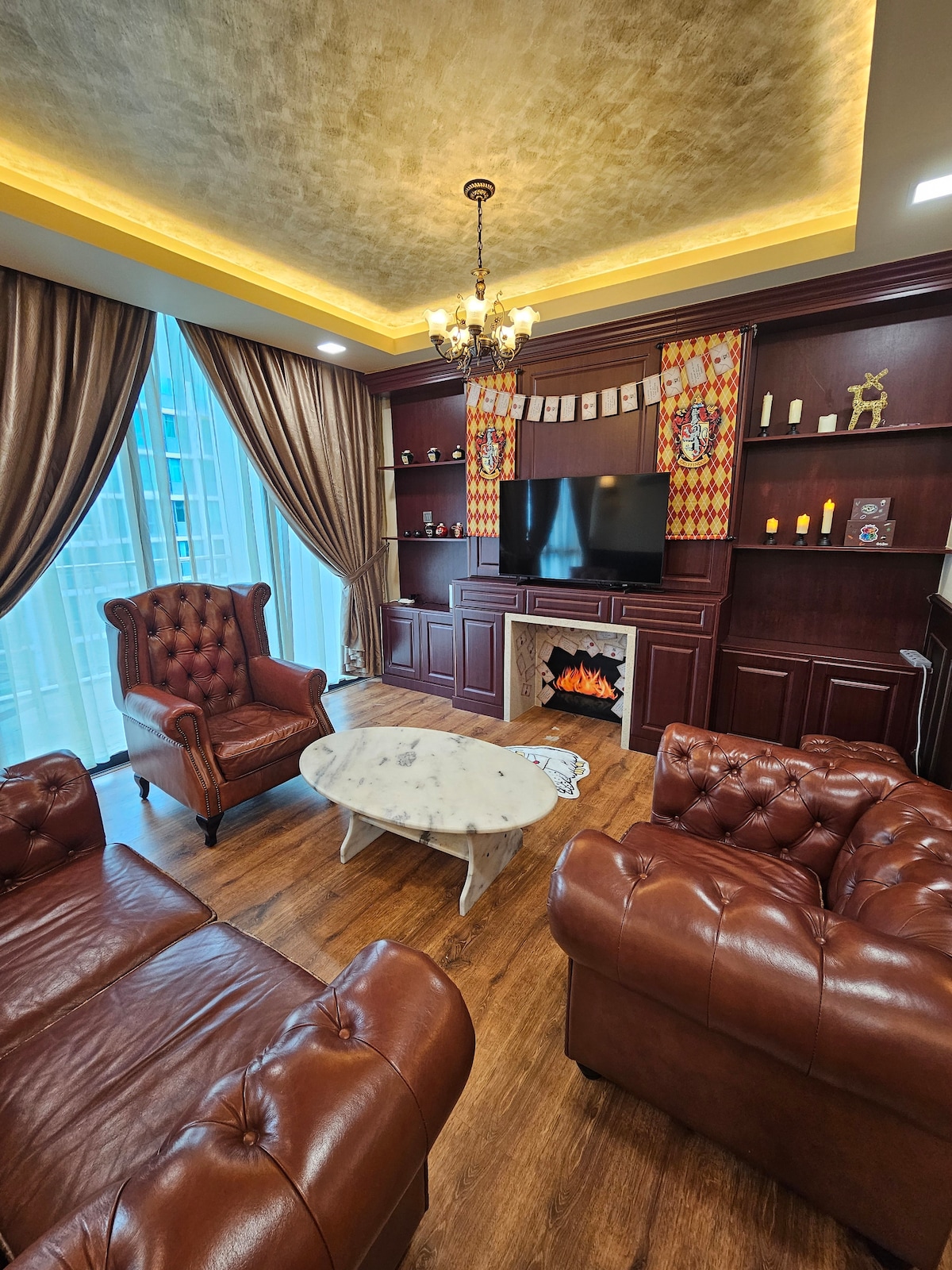 Միացեք կախարդական հանգստի այս Հարրի Փոթերի թեմաներով 3 ննջասենյակով, 2 լոգասենյակով ապաստարանին ։ Կատարյալ է մինչև 7 հյուրի համար ։ Յուրաքանչյուր սենյակ նախատեսված է ձեզ անմիջապես Հոգվարթս տեղափոխելու համար ։ Հանգստացեք Գրիֆինդորի ընդհանուր սենյակում, ճաշեք Great Hall - ի ոգեշնչված խոհանոցում կամ հանգստացեք մեր Hufflepuff - ի թեմատիկ հարմարավետ ննջասենյակում: Անկախ այն բանից ՝ կախարդ եք, կախարդ, թե մուգլ, այս հիասքանչ այցը անմոռանալի արկածներ է խոստանում բոլոր տարիքի մարդկանց համար ։ Մենք հարմարավետորեն գտնվում ենք Kuching - ի Vivacity Mall - ի վերևում ։