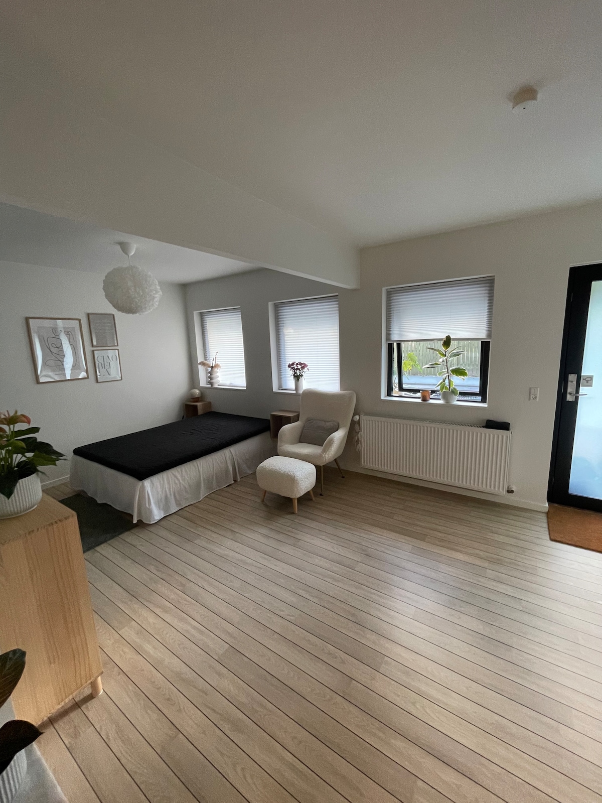 1 սենյականոց բնակարան ՝ առանձին մուտքով, մեր ընտանեկան տան առաջին հարկում ։ Գտնվում է դեպի Սիգնալբակեն ոտքով հեռավորության վրա գտնվող հանգիստ թաղամասում, որտեղից բացվում է տեսարան դեպի ամբողջ քաղաքը և ֆյորդը ։ 2 կմ հեռավորություն մինչև Techcollege և ուղիղ ավտոբուսային կապ ։ Բնակարանն ունի լիովին կահավորված խոհանոց ՝ գազօջախով, ամանալվաց մեքենայով և սառնարանով/սառնարանով ։ Խոհանոցի և հյուրասենյակի համակցված տարածք և առանձին ննջասենյակ ՝ պահարանով և աշխատասեղանով ։ Զուգարան ՝ լվացքի մեքենայով և չորանոցով ։