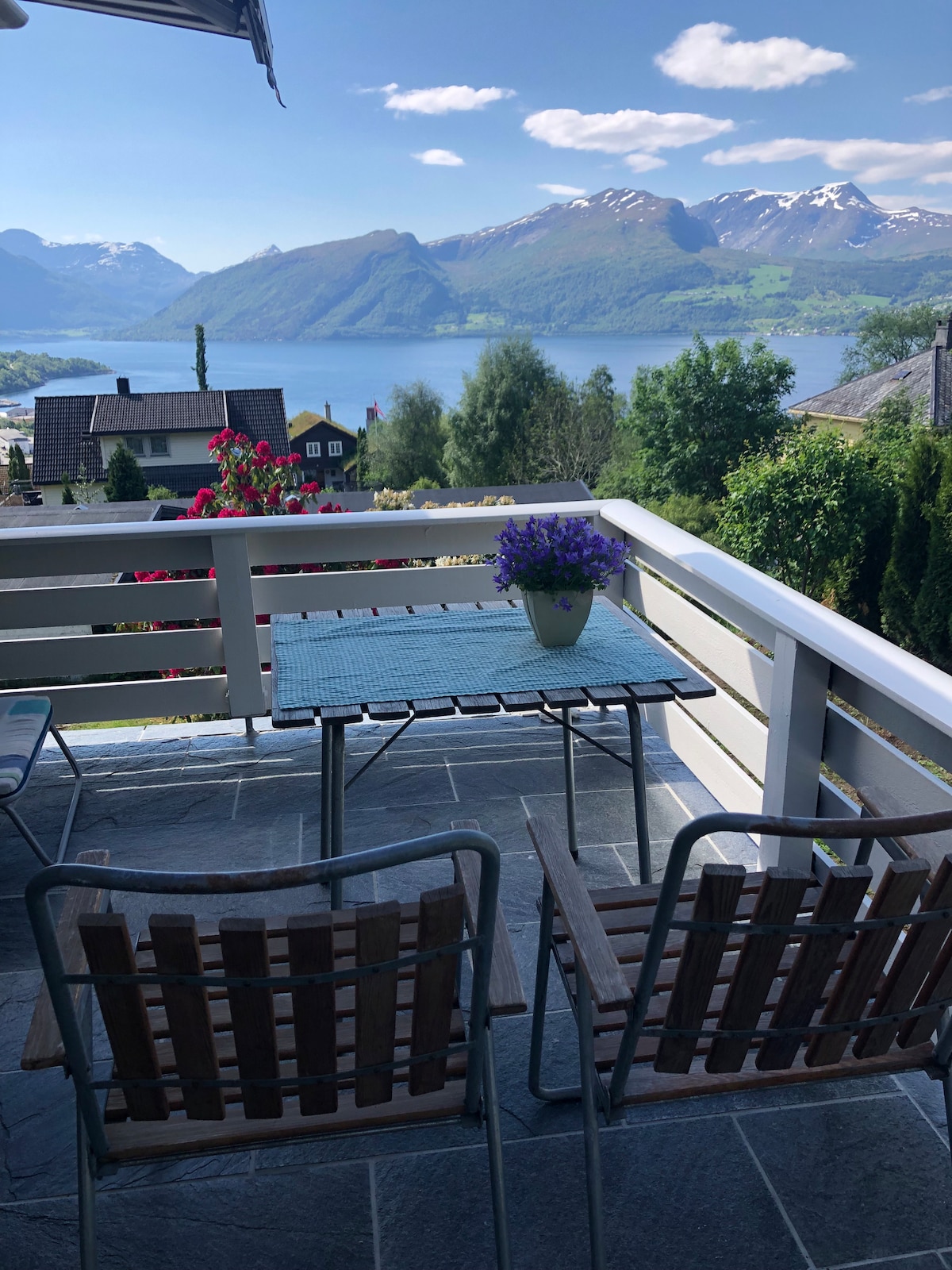 Er du på utkikk etter en moderne leilighet, med en spektakulær utsikt i hjertet av Sunnmørsalpene? Da er dette stedet for deg. Leiligheten har en privat veranda på 100 m2, med en utsikt som må oppleves, og som du sent vil glemme. Det er tilgang på syv sengeplasser, fordelt på tre soverom. Baderommet er stort og stilrent, og dere har også tilgang på ett ekstra toalett på vaskerommet. Kjøkkenet er velutstyrt, og stuen innbydende. Kort vei til både fjord, fjell og lokale butikker.