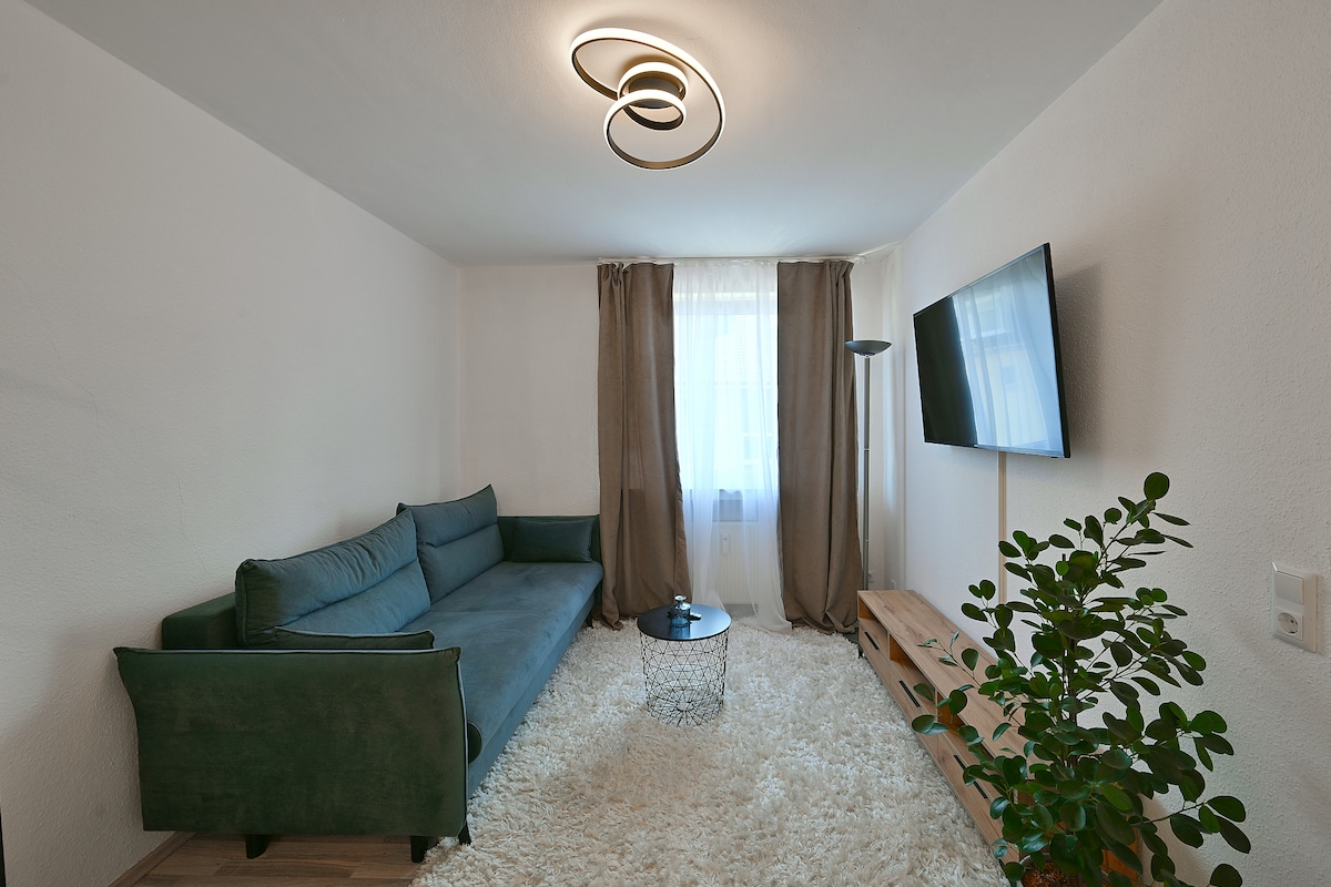We warmly welcome you to our cosy flat. The flat is located in a quiet no-through road with enough parking spaces in the beautiful Hagen-Emst district. A separate entrance with a covered terrace facing south leads to the living room/bedroom, fully equipped kitchen and modern bathroom with walk-in shower. Surroundings: - Walking distance to the Stadthalle (10min), Hagen city centre (15min). University of Applied Sciences Südwestf., Fern-Uni (10 min by car). Bus stops on site.