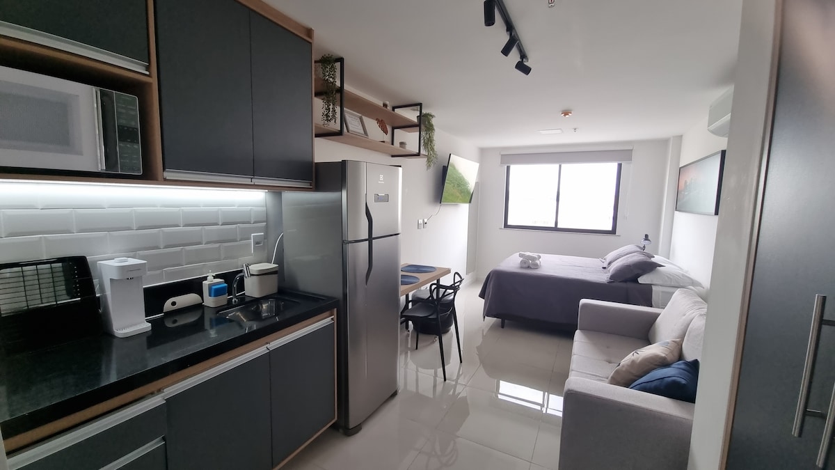 Ամբողջական և հարմարավետ ստուդիա Վոլտա Ռեդոնդայում ։ Վայելեք գեղեցիկ տեսարանով այս ժամանակակից ստուդիան ՝ հանգիստ տարածքում, Յունիմեդ հիվանդանոցից և Սաութ Պարկ առևտրի կենտրոնից ընդամենը մի քանի րոպե հեռավորության վրա: Հագեցած օդորակիչով, Wi - Fi - ով, ամբողջական խոհանոցով, երկտեղանի մահճակալով և թախտով ՝ տարածքը հարմարավետ է մինչև 3 հոգու համար ։ Իդեալական է գործնականություն և ռազմավարական դիրք փնտրողների համար ՝ լինի դա աշխատանքի, թե հանգստի համար ։