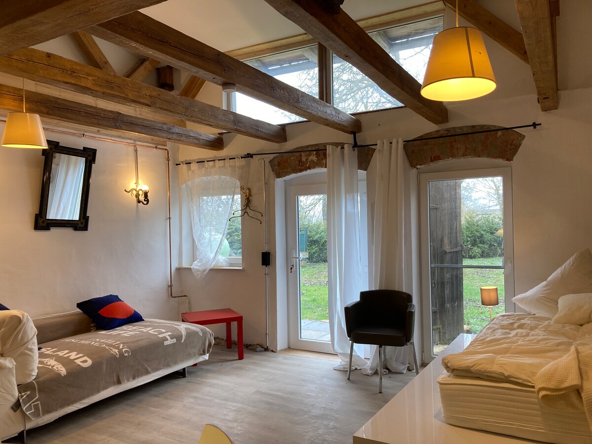 Լոֆթ, որն ապրում է երիտասարդ ամբարում ։ ilse, your country loft, fun 130 քառակուսի մետր տարածք ՝ 2 հարմարավետ ննջասենյակներով, բաց խոհանոցով հյուրասենյակով, փոքր տնակով սաունայով, մեծ լոգասենյակով և հյուրերի զուգարանով: Անհամբեր սպասում եք ամբողջ ընտանիքի համար նախատեսված սիրված վայրին, փոքրիկ պարտեզին, հիանալի ուղղություններին և Ռյուգեն կղզում լավ ժամանակ անցկացնելուն ։