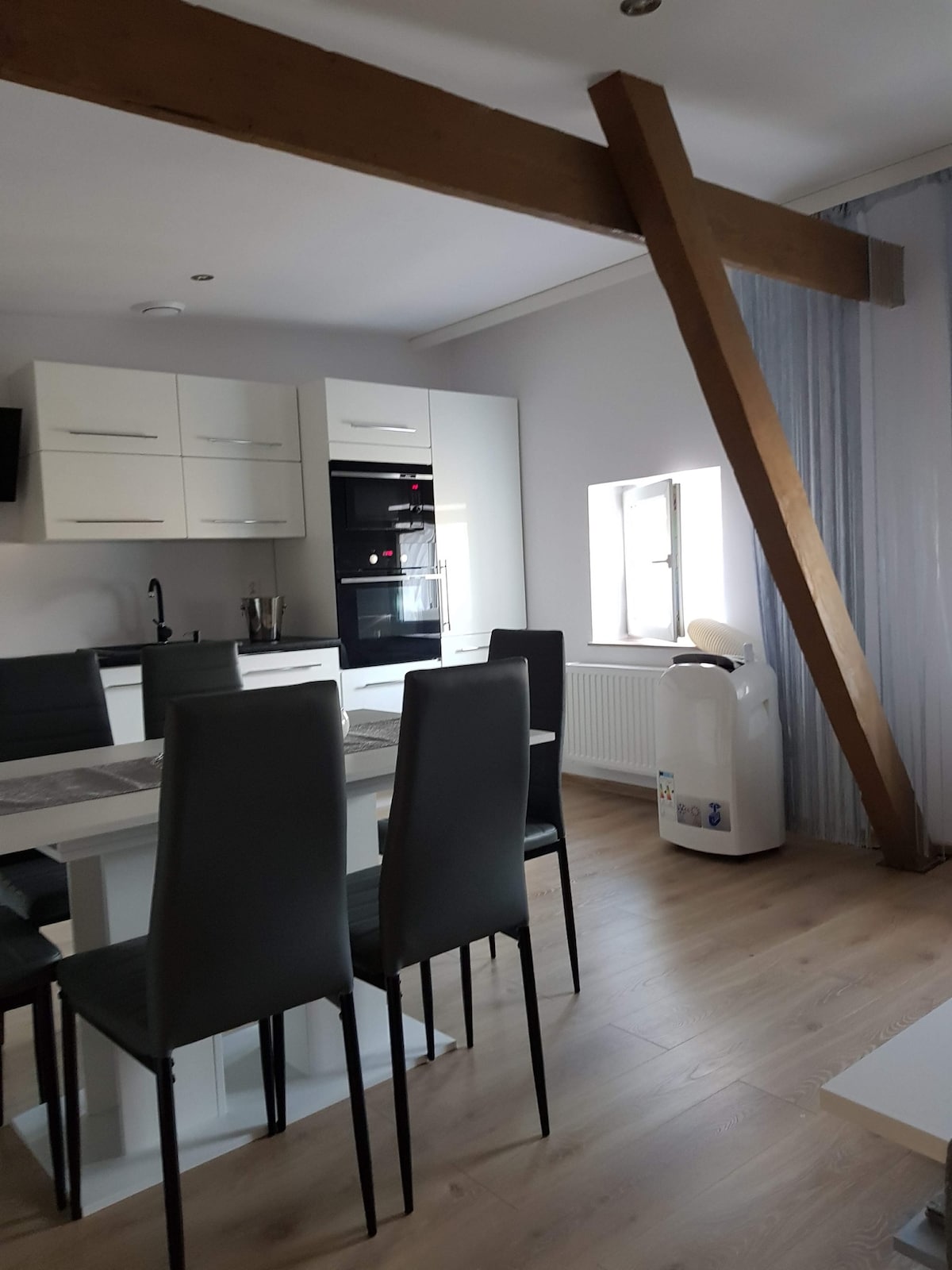 60 քմ մակերեսով բնակարանը բաղկացած է մինչև չորս հոգու համար նախատեսված մեծ սենյակից, ջեռոցով և ամանալվաց մեքենայով լիովին կահավորված խոհանոցից, ինչպես նաև լոգարանով լոգասենյակից և լվացքի մեքենայով մուտքի տարածքից ։ Բնակարանը հարմար է ընտանիքների, զույգերի և փոքր խմբերի համար ։ Այն գտնվում է Շտայնսեհաուսում, որը երկար հին աղյուսե շենք է մեծ սեփականության վրա, որտեղ կան բազմաթիվ պտղատու ծառեր և թփեր, հին ծառեր և բնական մարգագետին ՝ անմիջապես լճի ափին ։