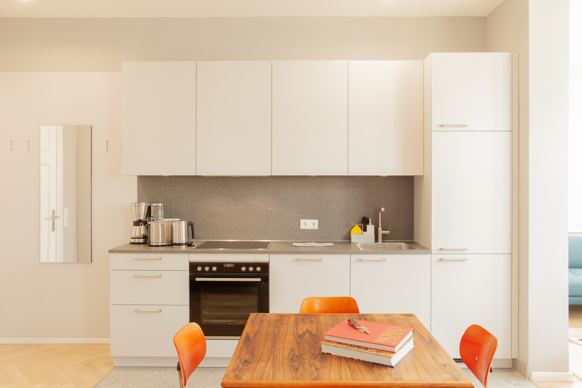 Այս «պենտհաուս» բնակարանը գտնվում է պատմական Հանսե քաղաքի հին կենտրոնի (և ՅՈՒՆԵՍԿՕ - ի համաշխարհային ժառանգության օբյեկտ) հին քաղաքի ամենագեղեցիկ անկյուններից մեկում: Այն ձգվում է երկու վերևի հարկերում ՝ ընդամենը 1760 թվականին կառուցված տան կարմիր կղմինդրով ծածկված տանիքի տակ ՝ 1300 - ից ավելի հիմքերի վրա ։ Արևից խանձված բնակարանը գտնվում է նավահանգստից և օվկիանոսումից երկու թաղամաս հեռավորության վրա դեպի արևելք, իսկ քաղաքապետարանի շենքից/հին շուկայի հրապարակից դեպի արևմուտք ։ Այս մաիսոնետ բնակարանը գտնվում է Ստրալսունդ հին քաղաքի մեջտեղում ։