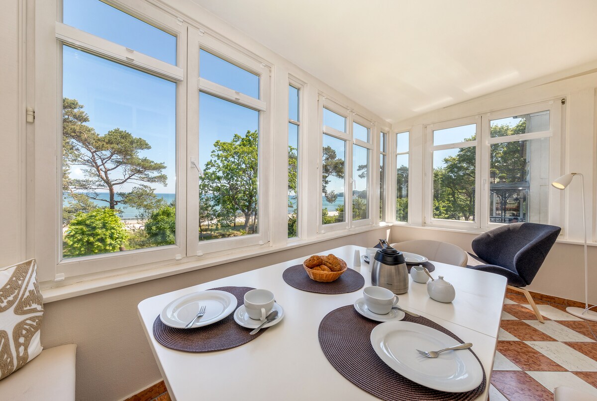 Ժամանակակից դիզայնը համապատասխանում է ֆանտաստիկ տեղադրությանը.89մ ² բնակարանը կարող է տեղավորել 2 -5 մարդ և գտնվում է «ԱՌԱՋԻՆ տան» բացառիկ բնակարանում, որը նոր է բացվել 2018 թվականին: ԱՌԱՋԻՆԸ Բալթիկ ծովի հանգստավայրի առաջին հասցեներից մեկն է և գտնվում է գլխավոր լողափից և պատմական պիրսից ընդամենը մի քանի մետր հեռավորության վրա: Եզակի առանձնահատկություններից են ԱՌԱՋԻՆ Sellin - ի տանիքում գտնվող ջեռուցվող պանորամային լողավազանը և շոգեբաղնիքները, ինչպես նաև բացօթյա լողավազանը ՝ ավազաբլուրներում ։