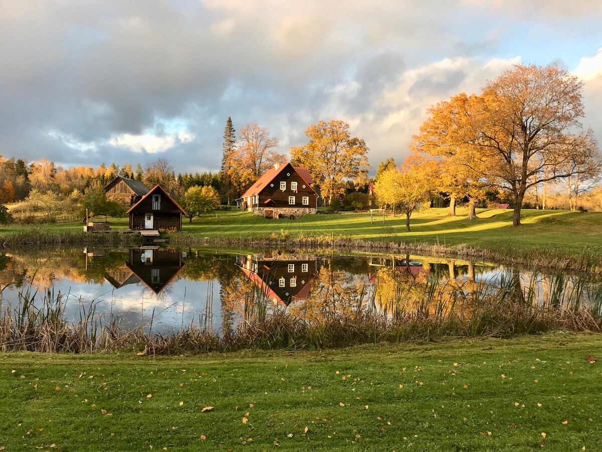 Միացրեք ամեն ինչ այս յուրահատուկ, հանգստացնող կացարանում ։ Այս 125 - ամյա փայտե ագարակը գեղեցիկ վերանորոգվել է բազմաթիվ օրիգինալ մանրամասներով ։ Ագարակը գտնվում է գեղեցիկ պարտեզում ՝ լճակներով և սեփական սաունայի տանը ՝ ջակուզիով ։ Գտնվում է Օտեպաա լանդշաֆտային զբոսայգու վայրի բնության մեջտեղում ՝ 60 հեկտար մասնավոր անտառով ։ Բացարձակ խաղաղությունն ու գաղտնիությունը երաշխավորված են այստեղ: Տունն ունի ժամանակակից խոհանոց և լոգասենյակ և 3 շատ ընդարձակ ննջասենյակ ։