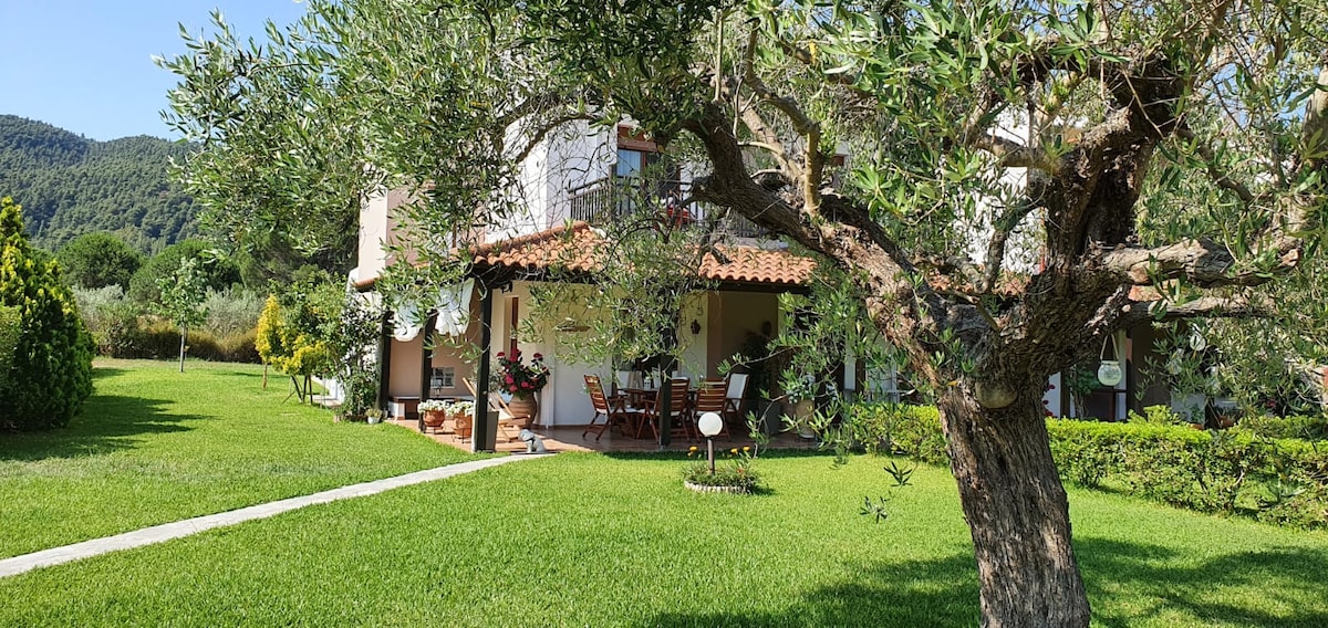An exceptional summer villa of 55sq.m. beautifully equipped & furnished with two bedrooms,2 bathrooms(internal&external shower),as well as a living room & kitchen. Contra Mare constitutes an ideal destination surrounded by a big green courtyard just 60 meters away from beautiful Trani Ammouda that has been given the status as a “Blue Flag” beach in front of an impressive view of Mount Athos! Ideally suited for carefree family relaxing summer holidays!
