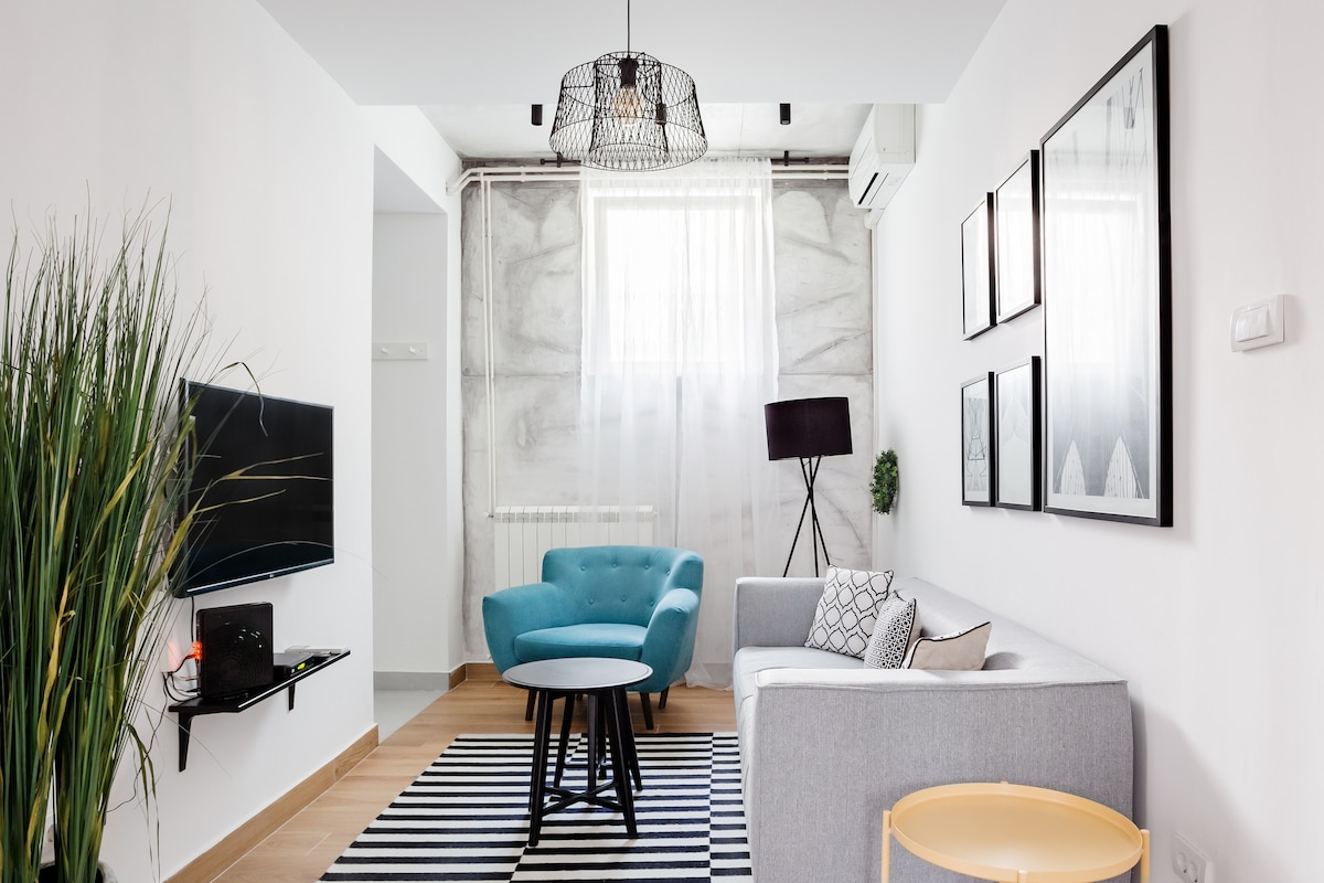 Լիովին կահավորված մինիմալիստական բնակարան կայանատեղիով