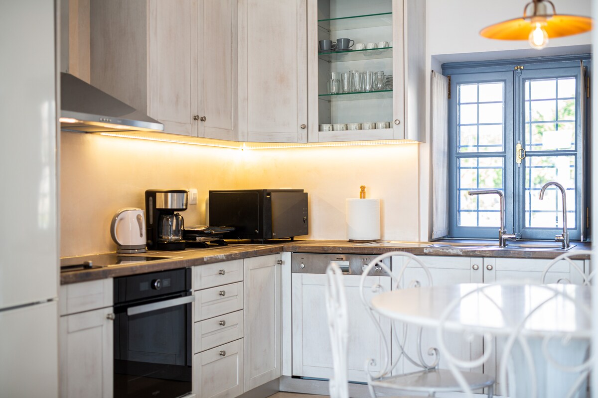 Cosy studio of 55sqm easily accessible with a 5 minute walk from the main port, on a very pleasant and tranquil neighborhood slightly off the center of Hydra's main town. Recently renovated with freshness and style.