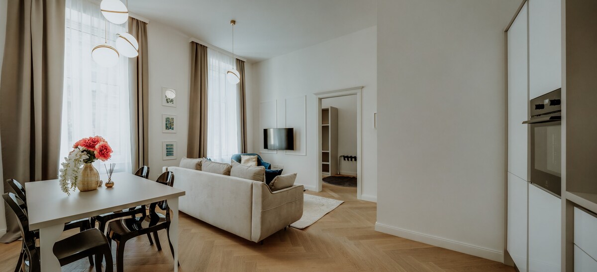 Բնակարաններն ունեն մեծ ակնոցներով մուտքի սրահ, բաց տարածքներ, որտեղ մեկ սենյակում ճաշասենյակ, խոհանոց և հյուրասենյակ, առանձին ննջասենյակներ և ցնցուղով լոգասենյակներ ։ Այն նախատեսված է բոլոր նրանց համար, ովքեր ցանկանում են մնալ ընդարձակ, ժամանակակից տարածքում ՝ վինտաժով, դյութիչով և հարմարավետ հանգստի համար անհրաժեշտ բոլոր հարմարություններով ։ Մեր բնակարանները ստեղծված են այնպես, որ հյուրերն իրենց հանգիստ և հարմարավետ զգան, որպեսզի այնտեղ խաղաղություն գտնեն ։