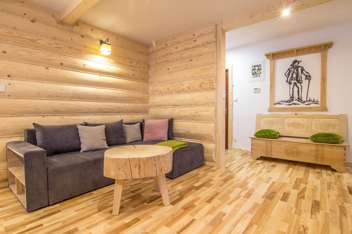 Apartament HRUBY REGIEL (Nazwa szczytu 1339mnpm - reglowego leżącego բնակարանի պատուհաններից աջ նայելով) երաշխավորում է Թաթրայի արահետներին և բնությանը մոտիկ հանգիստը: Շքեղ, ընդարձակ և լուսավոր ինտերիերը յուրահատուկ տպավորություն է թողնում Զակոպանե ոճի մթնոլորտում ժամանակ անցկացնելուց հետո: Փայտե ինտերիերը և փայտե կահույքը, մեծ ԱՅԳԻՆ, տարածաշրջանային բազմաթիվ տարրերը պատկերացում են տալիս շրջակա լեռների կլիմայի մասին: