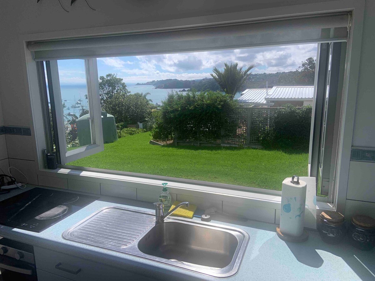 Available over Easter. Get away from it all at this quiet, private haven off the beaten track. Watch the tuis in the Pohutukawa tree and take in panoramic sea views without leaving your duvet. Perfect for couples. It's a good climb up from the road but the views make it worthwhile. It’s a 10 minute walk down to Rocky Bay beach and Whakanewha forest reserve is right on the doorstep. Buses go to Rocky Bay but a car is recommended for further island excursions