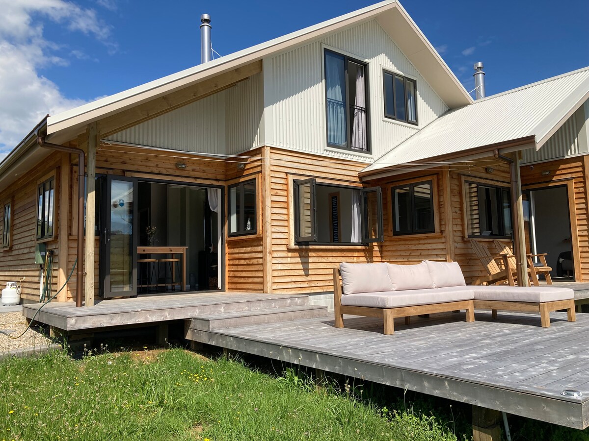 Քանդեք և վայելեք քաղաքին մոտ լինելը, սերֆինգը և այն ամենը, ինչ առաջարկում է Whāingaroa - Raglan - ը ։ Դիտեք մայրամուտը տախտակամածից, հանգստացեք կրակի դիմաց, հանգստացեք վինտաժային ոճով կառուցված տարածքում կամ սրճարանից բռնեք հարթ սպիտակ անկյունից ՝ նախքան նավահանգիստ թափառելը: Կատարյալ սերֆերի հանգիստը միակողմանի կամրջի արևմտյան կողմում ՝ դեպի Կետե ծովածոց տանող արագ ճանապարհով ։ Հիանալի վայր երեխաների համար ։ Եվ տնային կենդանիները ողջունելի են ։