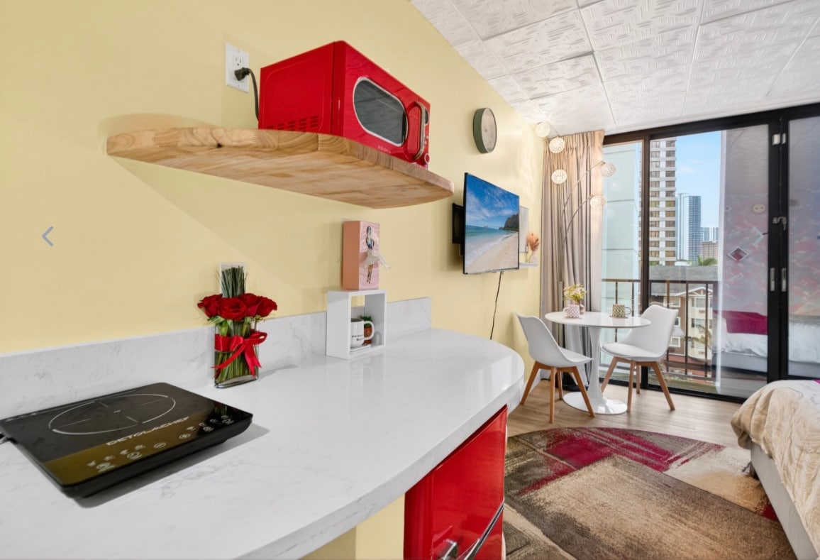 Բոլորովին նոր հայտարարություն ՝ բոլոր նոր կահավորանքով ։ Վայելեք ոճային փորձառություն այս 200 քառ. ֆուտ տարածքում ։ Այն իսկապես ամեն ինչի կենտրոնում է ՝ հանրահայտ Ala Moana Shopping Center - ը, Ala Moana Beach Park - ը և Waikiki - ն բոլորն էլ ոտքով հեռավորության վրա են: Ցնցուղը, Wi - Fi - ը, ներքնակները և օդորակիչն աշխատում են հմայքի պես ։ Հարակից տարածքում կայանատեղին կազմում է օրական 41,88 $ ։ Մինչև 5 ճամպրուկով ճամպրուկների պահեստը 25 $ կանխիկ է ընդունարանում ։