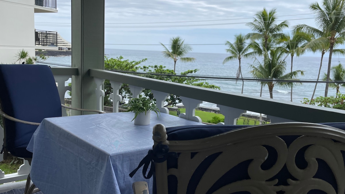 🌊 Փախուստ դեպի Դրախտ պատմական Alii Drive - ում 🌺 Բարի գալուստ ձեր լողափնյա հանգիստը Կոնայի սրտում: Օվկիանոսի ափից ընդամենը մեկ րոպե հեռավորության վրա և հայտնի Alii Drive - ի երկայնքով գտնվող այս գեղեցիկ վերանորոգված հարկաբաժինն առաջարկում է Հավայան կղզիների լավագույն հանգիստը ։ Անհավանական վայր ՝ զբոսանք դեպի լողափ, խանութներ և ռեստորաններ Լիովին արդիականացված խոհանոցիկով (ներառում է կաթսաներ, թավաներ, սպասք և գինու բաժակներ) Գերարագ ինտերնետ ՝ կատարյալ է հեռավար աշխատանքի համար Կոնայի միջազգային օդանավակայանից ընդամենը 15 րոպե հեռավորության վրա