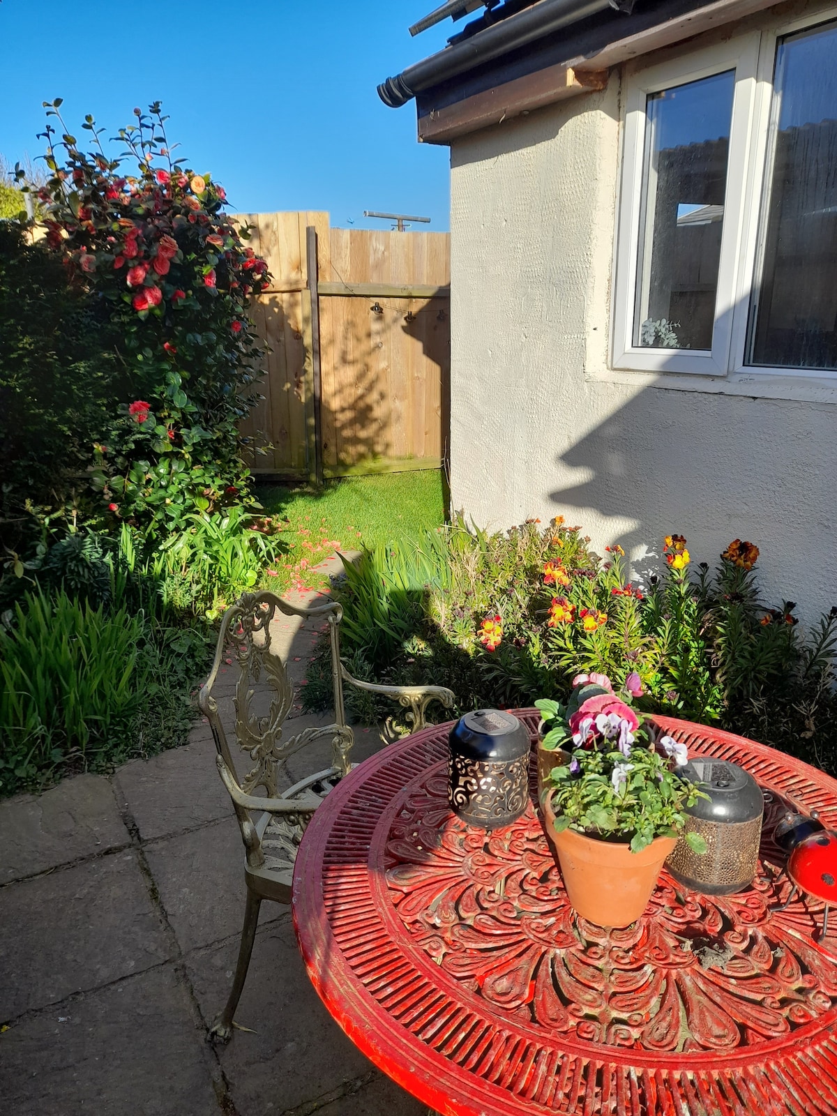Գեղեցիկ բոհեմական /ռոմանտիկ Ինքնուրույն տարածք մեր այգում երկու անձի համար: Գեղեցիկ տեքստիլ և աշխույժ գույներ , որոնք արտացոլվում են Հնդկաստան, Ասիա և Կարիբյան ծով մեկնելու իմ սիրուց, արևոտ պարտեզի տարածք ՝ մանղալով , սեղանով և աթոռներով ՝ հանգստանալու համար ։ Առանձին մուտք դեպի գեղեցիկ լողափ Կատարյալ է ռոմանտիկ հանգստի համար թեյ /սուրճ/ Թեթև նախաճաշ Երեկոյան սննդի տարբերակներ ՊԵՏՔ Է ՍԻՐԵՆՔ ԿԱՏՈՒՆԵՐԻՆ, որոնք ունենք պուդինգ և Պերսի ՝ մեր գեղեցիկ էկզոտիկները և բազիլը ՝ մեր պաշտելի Հավամալտը