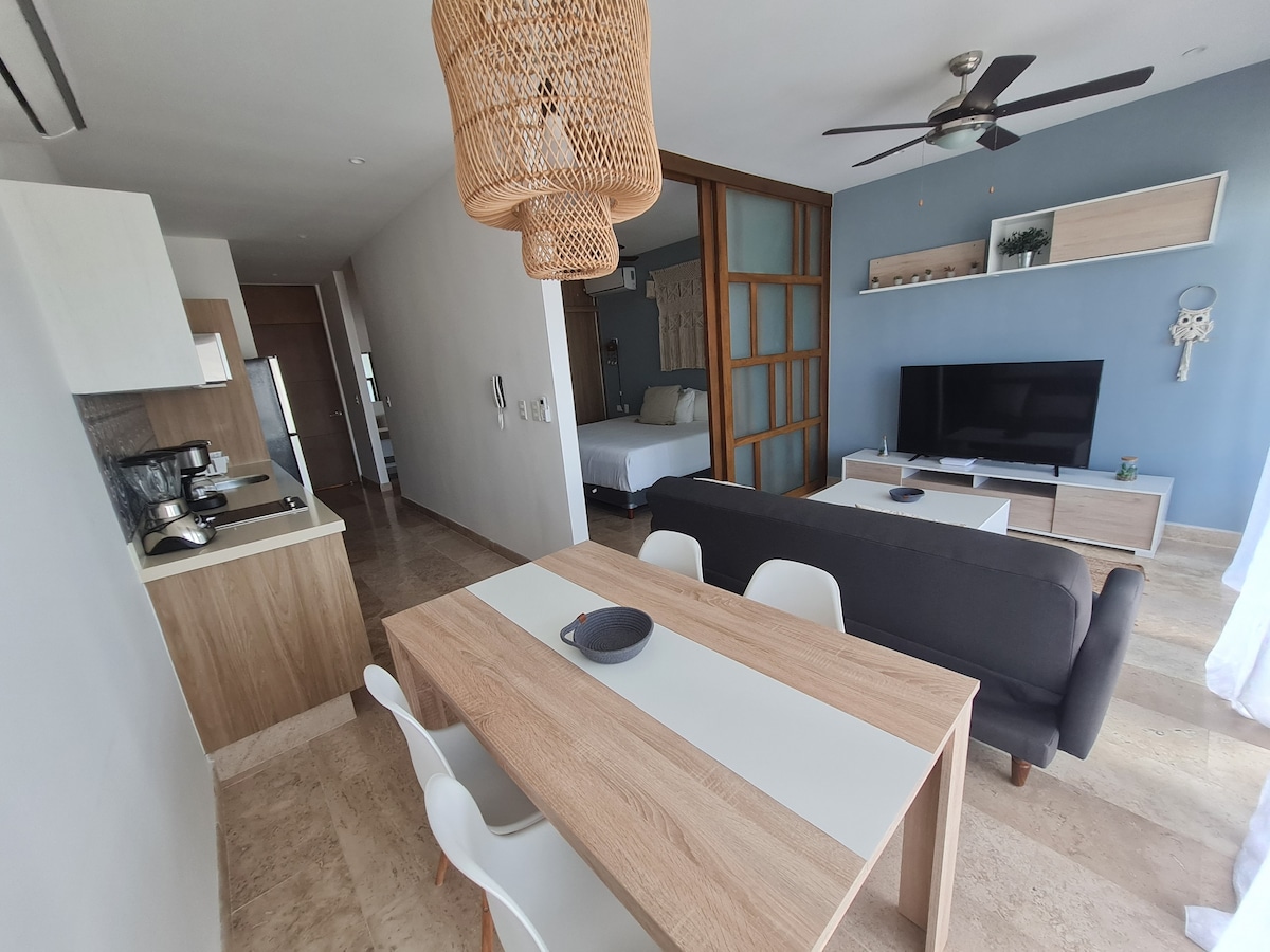 Այս վայրն ունի ռազմավարական դիրք Պլայա դել Կարմենի սրտում. Հայտնի Quinta Avenida - ից 4 թաղամաս հեռավորության վրա ՝ լողափին այնքան մոտ, որ կարող եք քայլել և սուպերմարկետից ընդամենը մի թաղամաս հեռավորության վրա: Այն շատ անվտանգ տարածք է, որտեղ կգտնեք ռեստորաններ և բոլոր տեսակի ծառայությունները ընդամենը մի քանի քայլ հեռավորության վրա: Այն ունի գեղեցիկ տանիքի լողավազան, որը նայում է դեպի Կարիբյան ծով, մարզասրահ և մանղալ ՝ շենքի ընդհանուր տարածքում ։ A/A, խոհանոց, հեռուստացույց և Wi - Fi բնակարանի ներսում ։