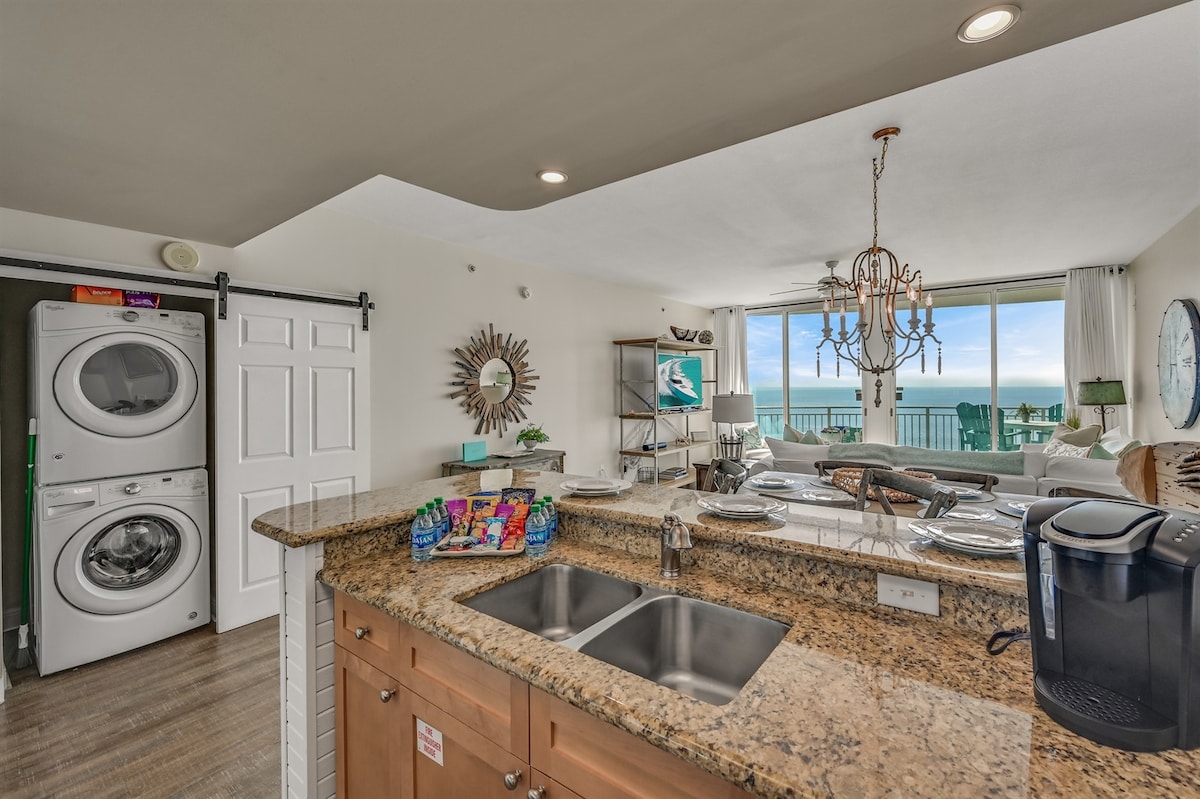 Էլեգանտ 1BR/2BA կոնդոմինիում Majestic Sun - ում, որտեղից բացվում են ծոցի հիասքանչ տեսարաններ 10 - րդ հարկի ընդարձակ պատշգամբից ։ Ծովափնյա շտրիխով նորաձև կահավորված ՝ այն ունի մեծ մահճակալ, լոգասենյակ, միջանցքի բունկերներ ՝ սեփական հեռուստացույցով, Netflix - ով և քնելու համար նախատեսված բազմոց ։ Վայելեք ամբողջական խոհանոցը, գերարագ Wi - Fi - ը և հեռուստացույցները յուրաքանչյուր սենյակում: Գտնվում է A շենքում, որը գտնվում է ծածկված կայանատեղիի մոտակայքում ՝ հեշտ հասանելիությամբ ։ Հյուրերը տարեցտարի վերադառնում են օվկիանոսի և լողափի տեսարանների, հարմարավետության և լողափի անմոռանալի փորձառության ։