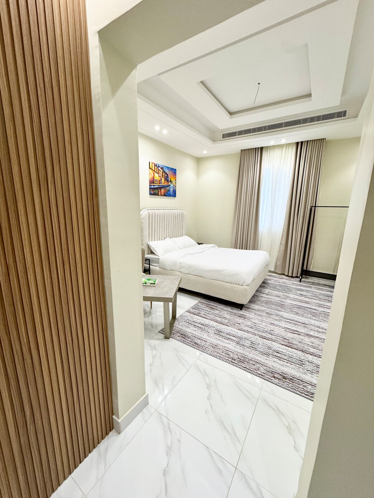 غرفة فاخرة بسرير ماستر مريح، جلسة أنيقة، شاشة ذكية، دورة مياه خاصة وركن قهوة. قريب من الحرم المكي وفي منطقة هادئة وآمنة بجوار جامع الراجحي، مع سهولة الوصول للمولات والمطاعم والممشى. مثالي للراحة والسكينة لقضاء أجمل الأوقات. Luxury room with master bed, stylish seating, smart TV, private bathroom, and coffee corner. Near Al-Haram in a quiet, safe area next to Al-Rajhi Mosque, with access to malls, restaurants, and walking areas. Perfect for comfort, relaxation, and unforgettable stays.