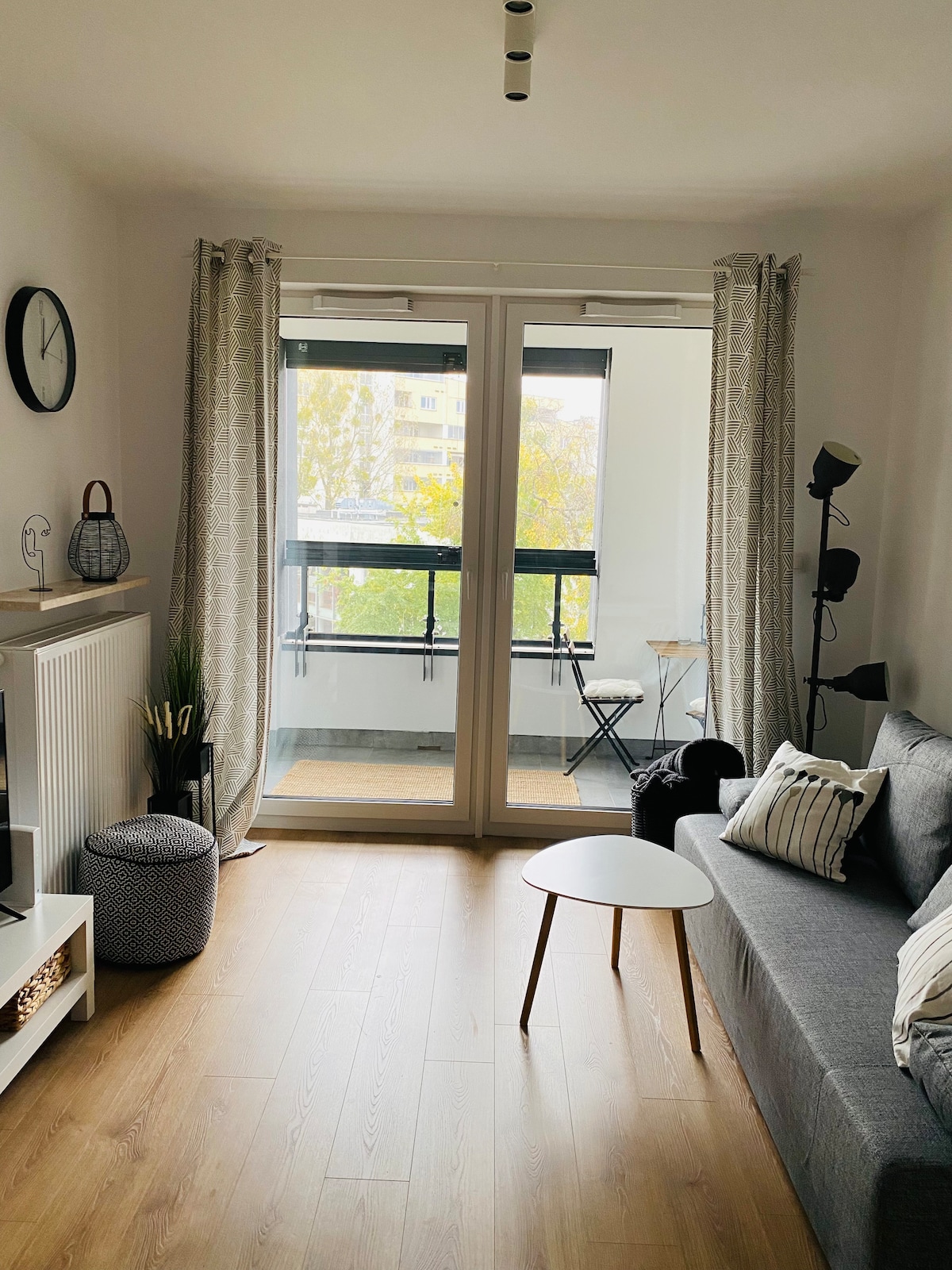 Ժամանակակից, լիովին կահավորված բնակարան ՝ մեծ կտուրով, որը գտնվում է Վլոշի թաղամասում ՝ զբոսայգու և Գործարանային Ուրսուսի առևտրի կենտրոնի մոտակայքում ։ Հարմարավետ մահճակալ, հեռավար աշխատանքի տեղ, խոհանոցի ամբողջական սարքավորումներ, զգեստապահարան, մանկական մահճակալ ՝ ըստ պահանջի, կայանատեղի, տեռաս, հեռուստացույց + Netflix. այն ամենը, ինչ անհրաժեշտ է հարմարավետ այցի համար:) Մոտակայքում կան մթերային խանութներ, հացաբուլկեղենի գործարան, ռեստորաններ և սրճարաններ: Տարածքը լավ կապված է (գնացքով 15 րոպե մինչև կենտրոն, Շոպենի օդանավակայանից մեքենայով ՝ 15 րոպե )։ Բարի գալուստ:)
