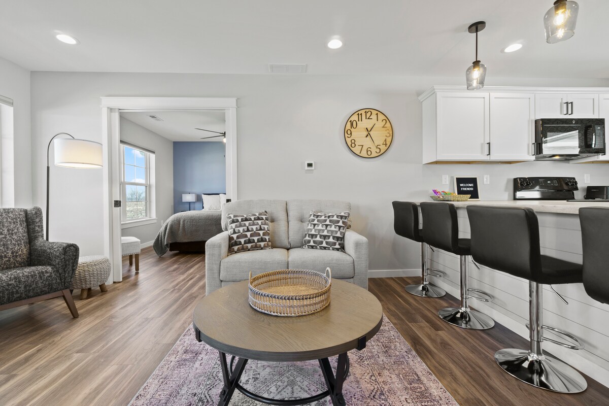 You will feel right at home in a quiet, relaxing new subdivision located in beautiful Washington, Iowa. This property neighbors the Washington Golf and Country Club. Our newly-built home features two bedrooms, two bathrooms, NO STEPS, an oversized one stall garage, full laundry facilities, and a dedicated workspace. Enjoy our complimentary basket of snacks, a variety of K-cups, and water bottles - stocked just for you to enjoy! We look forward to hosting you!