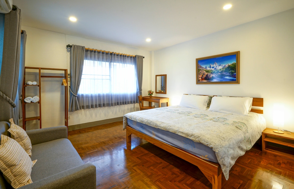 Մեր հմայիչ տունը կիսով չափ փայտե է ՝ 3 A/C ննջասենյակով և 3 լոգասենյակով: Այն հագեցած է խոհանոցով, բարով, օպտիկամանրաթելային Wi - Fi - ով և մեծ բաց տարածքով ։ Այն կատարյալ է ընտանիքի համար, որտեղ կան երեխաներ կամ մի խումբ ընկերներ: Մենք 10 րոպե քայլում ենք Chiangmai Gate - ից և շաբաթ օրը քայլելու փողոցից: Մենք առաջարկում ենք անվճար տնային նախաճաշ ամեն առավոտ և օդանավակայանից անվճար ծառայություն: