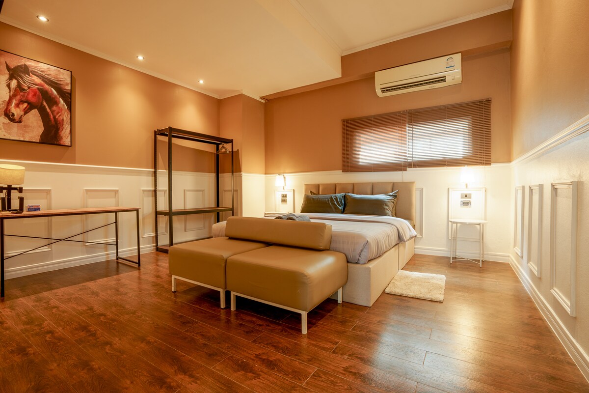 ✨ Ժամանակակից լոֆթ ոճ @ Նիմմանի կենտրոնում։ Մնացեք անկրկնելի ոճով։ 4-րդ հարկում գտնվող այս 31 մ² մակերեսով մեկ սենյականոց լոֆթը հաճելի լեռնային տեսարան է առաջարկում և ունի շքեղ, ժամանակակից դեկոր։ Ձեզ շրջապատում են նորաձև վայրեր։ Զվարճացեք մեր ֆիրմային տանիքի լողավազանում և ֆիթնես-ակումբում՝ վայելելով հիասքանչ մայրամուտները․ դա կատարյալ պարգև է։ Դուք գտնվում եք իրադարձությունների կենտրոնում՝ 5 րոպե քայլելու հեռավորության վրա One Nimman/Maya-ից, 2 րոպե՝ նորաձև բարերից/սրճարաններից։ Ներքին անվճար կայանատեղ և հաճելի պարտեզ։ Ամրագրեք ձեր նորաոճ տունն այսօր: