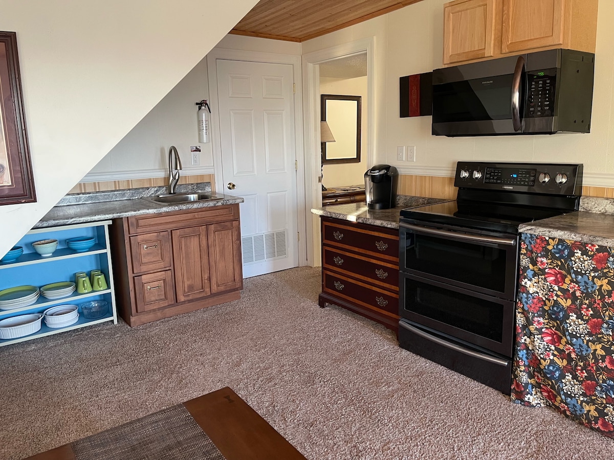 Այս նորաոճ նկուղային բնակարանը եզակի է, քանի որ այն ունի առանձին դուռ դեպի դուրս և կատարյալ է կորպորատիվ/նավթահանքերի ղեկավարների, ճանապարհորդող բուժքույրերի, երկու հոգանոց ընտանիքի համար: Այն հագեցած է մինի խոհանոցով, հյուրասենյակով, հեռուստացույցով և ինտերնետով, համակարգչով, տպիչով և մինի բարով ։ Այն կատարյալ է ամենօրյա և մեկշաբաթյա վարձակալության համար ՝ բացօթյա սիրահարների համար ։ Գերազանց Wi - Fi ՝ հեռավար աշխատանքի համար ։ Այն շատ մոտ է ռեստորաններին, բարերին, քաղաքի կենտրոնին, օդանավակայանին, առևտրի կենտրոններին, բենզալցակայանին և շատ հետաքրքիր վայրերի
