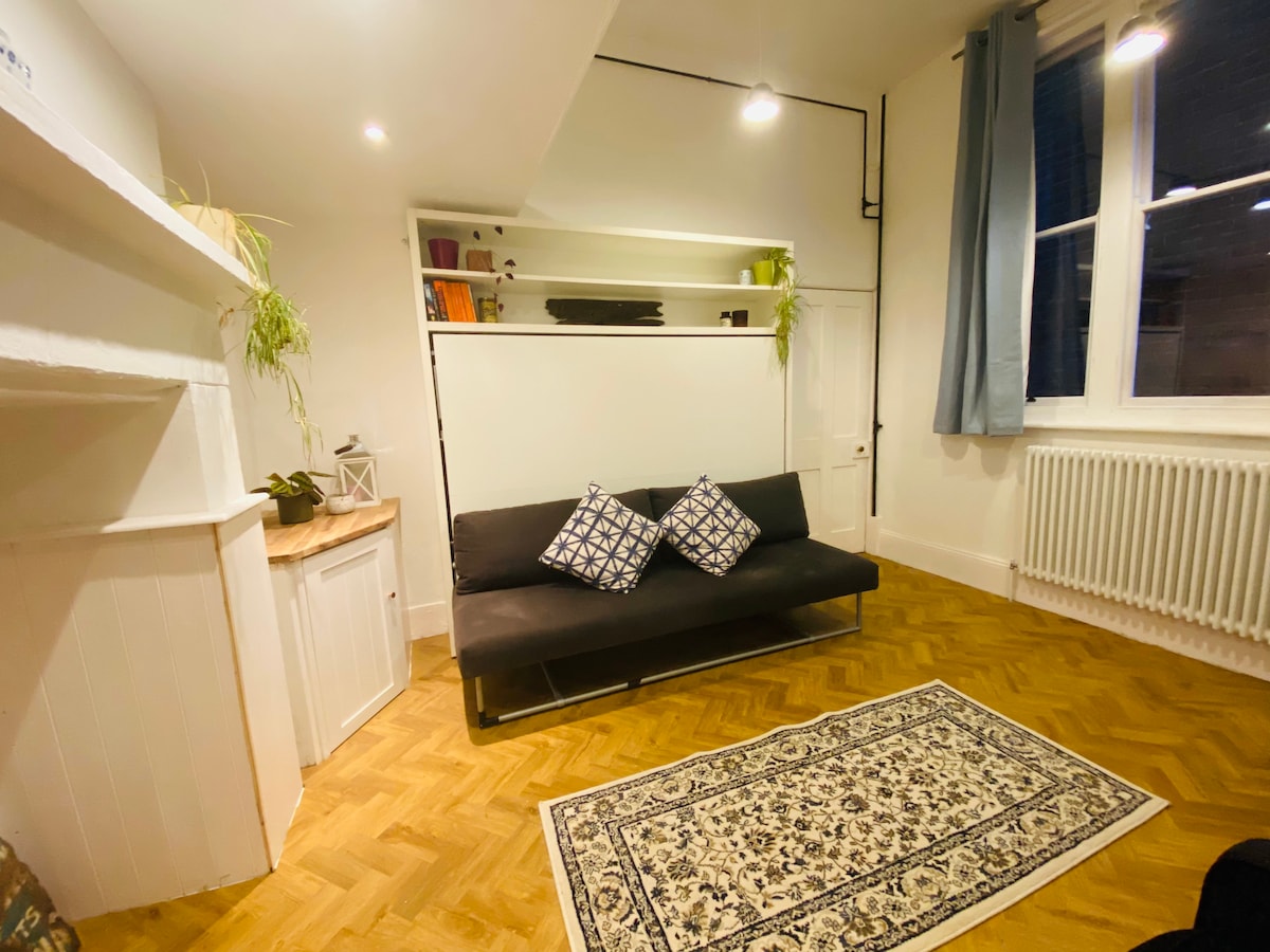 Նկարչի հարմարավետ արվեստանոց Իսթբորնի Հին քաղաքի տարածքի եզրին ՝ Հարավային Դաունսից ներքև, ծովից 2 մղոն հեռավորության վրա ։ Ստուդիան ունի սեփական մուտք, լոգասենյակ (ցնցուղ և զուգարան) Կա խոհանոցիկ ՝ միկրոալիքային վառարանով, սառնարանով, թեյնիկով, որը բացվում է դեպի փոքրիկ պատիո ։ Ոտքով 20 րոպե է մինչև Հին քաղաքի գեղեցիկ միջնադարյան պանդոկներ, եկեղեցի և ռեստորաններ և 10 րոպե ճանապարհ դեպի ծովափ (կամ 40 րոպե ոտքով), խանութներ և քաղաքի կենտրոն: Մյուս ուղղությամբ 10 րոպե, որը տանում է դեպի Սաութ Դաունս ազգային պարկ: