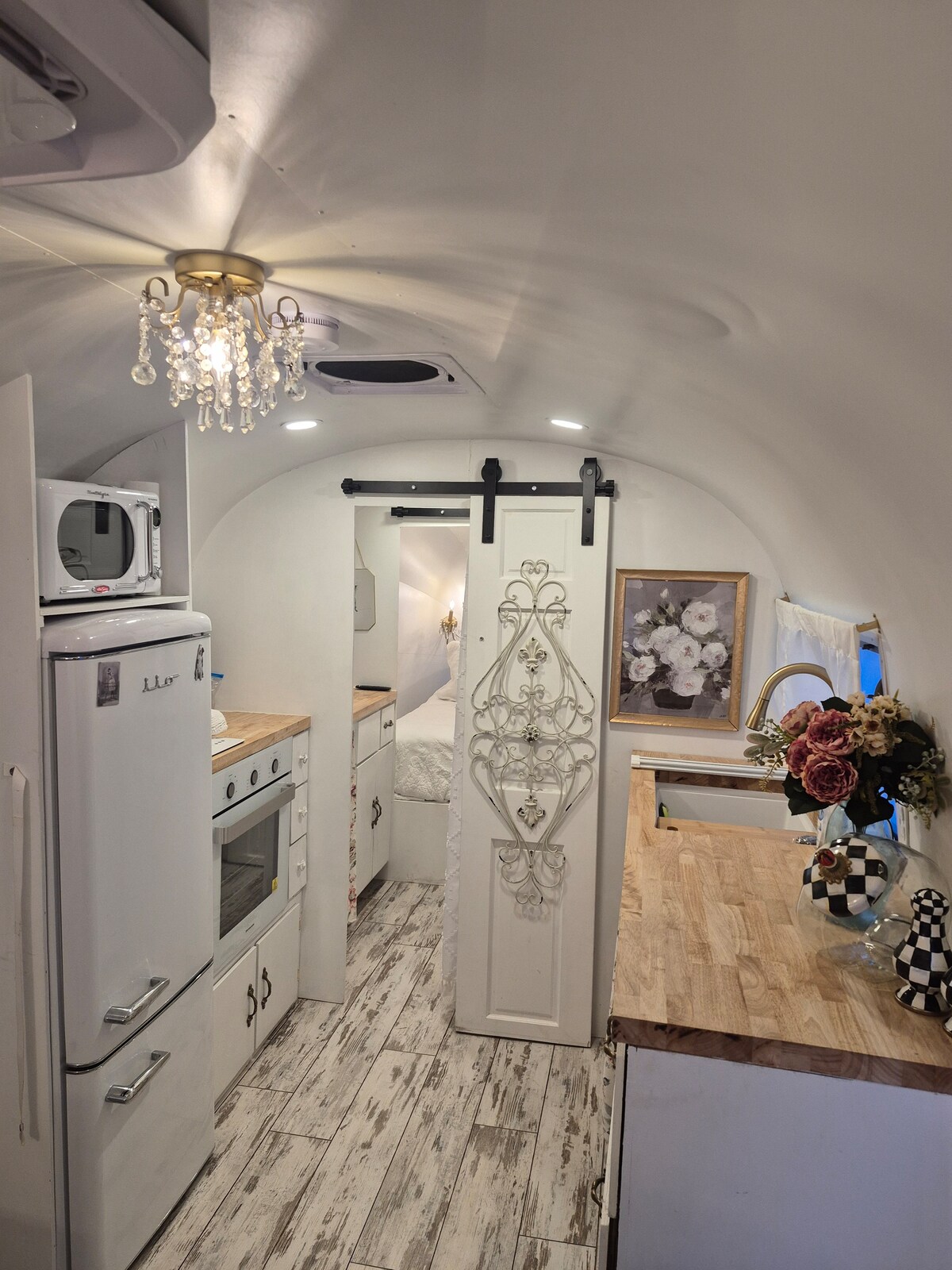 Experience a remodeled 1959 Airstream in a quiet, fenced backyard near SWOSU in Weatherford, OK. This cozy retreat features a short RV queen bed, compact bathroom (4–5 min hot showers), vintage-style kitchen, and a dinette that converts to a spacious second bed. Enjoy two smart TVs, AC and heat, solar backup, a brick patio with fire pit, and a small garden. Walk to SWOSU, and enjoy quick access to I-40, Route 66, and local dining.
