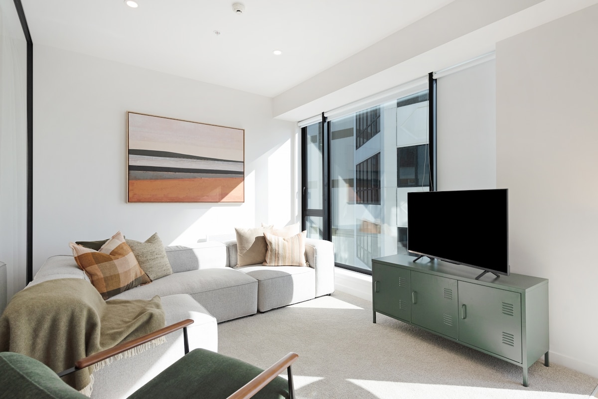 New Apartment, luxurious and comfortable, perfectly located in the heart of Wellington City. Featuring 2 bedrooms. Fully equipped kitchen, open plan lounge, dining area, balcony, and a shared laundry. This apartment is perfect for families, holiday makers, business travelers and everyone in between. Unlimited fast fibre wifi included (up to 300 Mbps down/100 Mbps up). 65-inch smart TV with standard NZ channels. This apartment shares an entrance way and laundry with a separate Airbnb Studio.