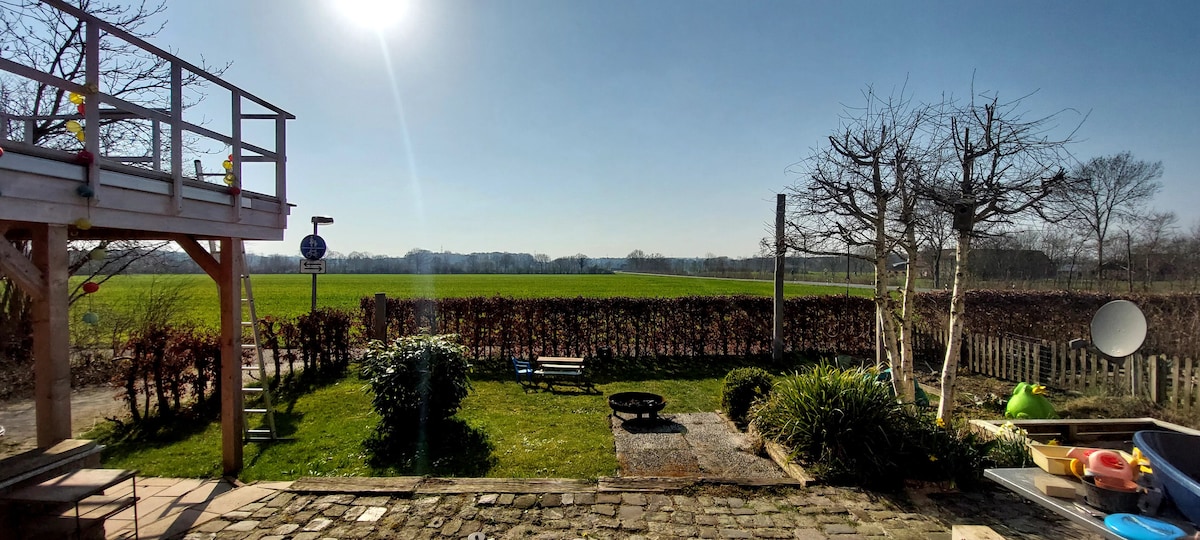 ՆՈՐ ՝ 2025 թվականի մայիսից. Մեր տունը Վերսեում. շրջապատված է բնությամբ և, այնուամենայնիվ, ընդամենը 20 րոպե հեծանվով մինչև Պրինցիպալմարկտ ։ Քոթեջը գտնվում է 1000 մ2 մակերեսով հողամասի վրա և առաջարկում է ուղիղ մուտք դեպի Վերսե ։ Պաշտպանված լանդշաֆտային տարածքը բնութագրվում է տիպիկ նավակներով, որոնք իդիլիական գետի վրա շղթայի վրա մարգարիտների պես են ։ Մոտակա բացօթյա լողավազանում կարող եք լողալ, հեծանվային և արշավային արահետը սկսվում է դռան դիմաց, իսկ նավակի վարձույթը նույնպես հեռու չէ: