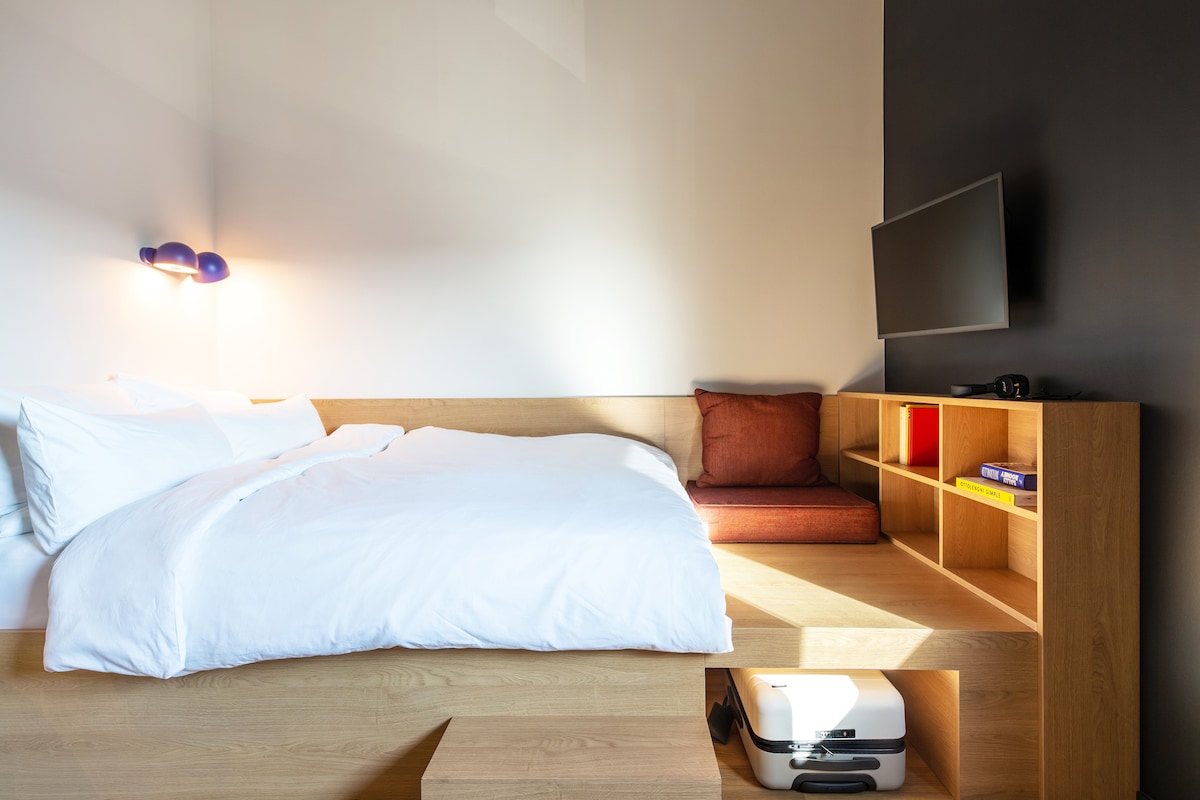 - Studio with 30sqm / 323sq ft of space - Ideal for up to 2 people - Double bed (160x200cm / 63x79in) - Modern bathroom with shower - Fully-equipped kitchenette with tea and coffee-making essentials and a dining table Please note that the actual room may differ from photos.