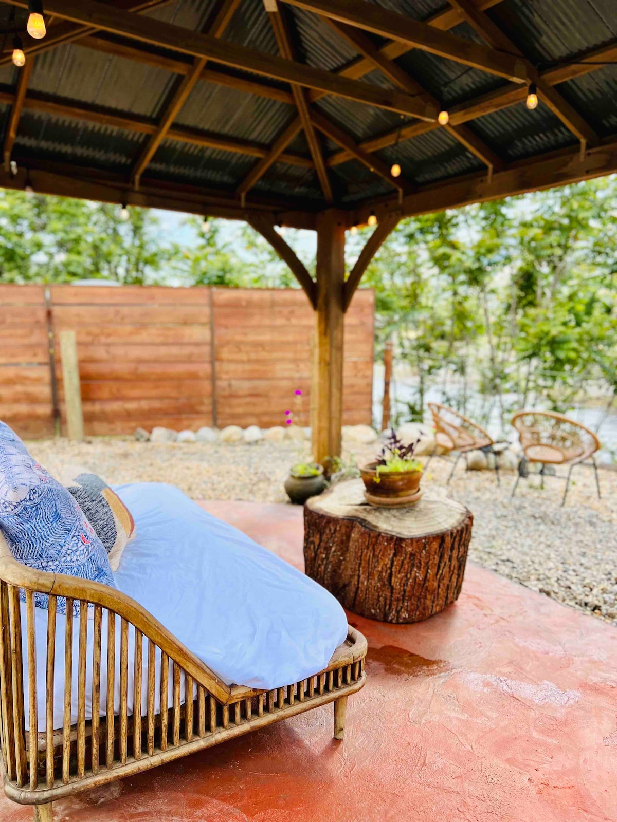 **NEWLY INSTALLED! ** Spa & sauna grotto is all ready for your romantic Bend getaway! This quiet, wooded, centrally located, standalone bungalow is steps from the Deschutes River trail, easy walking distance to Mill Dist. and Hayden Amphitheater. It boasts a comfy king bed w/premium down bedding & pillows, dedicated free parking (+ extra cars or small RVs), outdoor dining and patio area, washer/dryer, and a kitchen fully stocked with everything you need for fun and relaxation for all seasons!