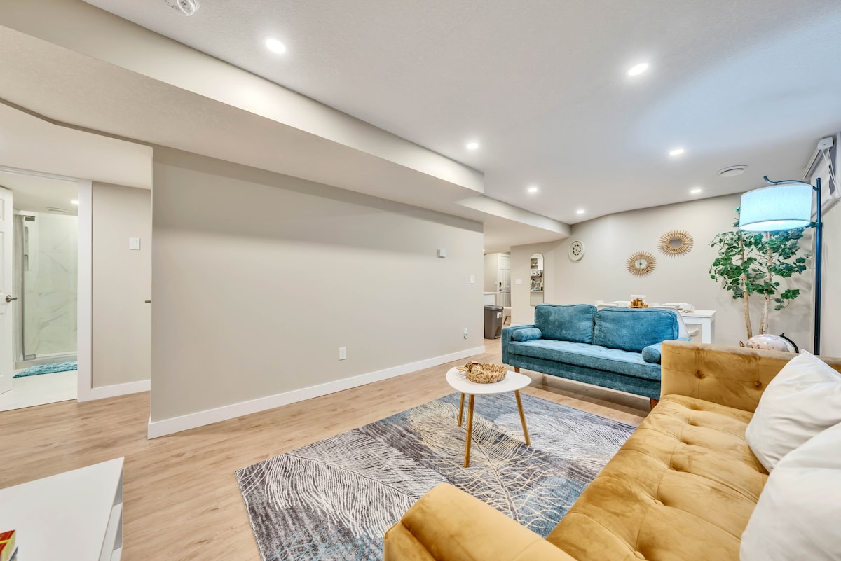 🏡 Հիմնական առանձնահատկություններ ✔️ Պայծառ, անթերի իրավաբանական նկուղային սենյակ ✔️ 2 ննջասենյակ՝ 150–179 սմ մահճակալներով և հյուրանոցային ոճի սպիտակեղենով ✔️ Ճապոնական ոճի ֆուտոն միայն 5-րդ հյուրի համար. լրացուցիչ օգտագործում ըստ պահանջի ✔️ Խոհանոց՝ Keurig կաթով սուրճմարանով ✔️ Հարմարավետ հյուրասենյակ՝ 58 դյույմ անկյունագծով սմարթ հեռուստացույցով ✔️Ներքին տարածքում կախովի նստատեղ ✔️ Առանձին մուտք և հեշտ ինքնուրույն ժամանում ✔️ Փողոցում կամ մուտքի մոտ անվճար կայանատեղի 📍 Մոտակայքում Մեքենայով ✔️ 2 րոպե մինչև առևտրի կենտրոն ✔️ 15 րոպե մեքենայով մինչև Ռաբիթ Հիլ լեռնադահուկային հանգստավայր ✔️ 20 րոպե մեքենայով մինչև YEG ✔️ 20 րոպե մեքենայով մինչև WEM