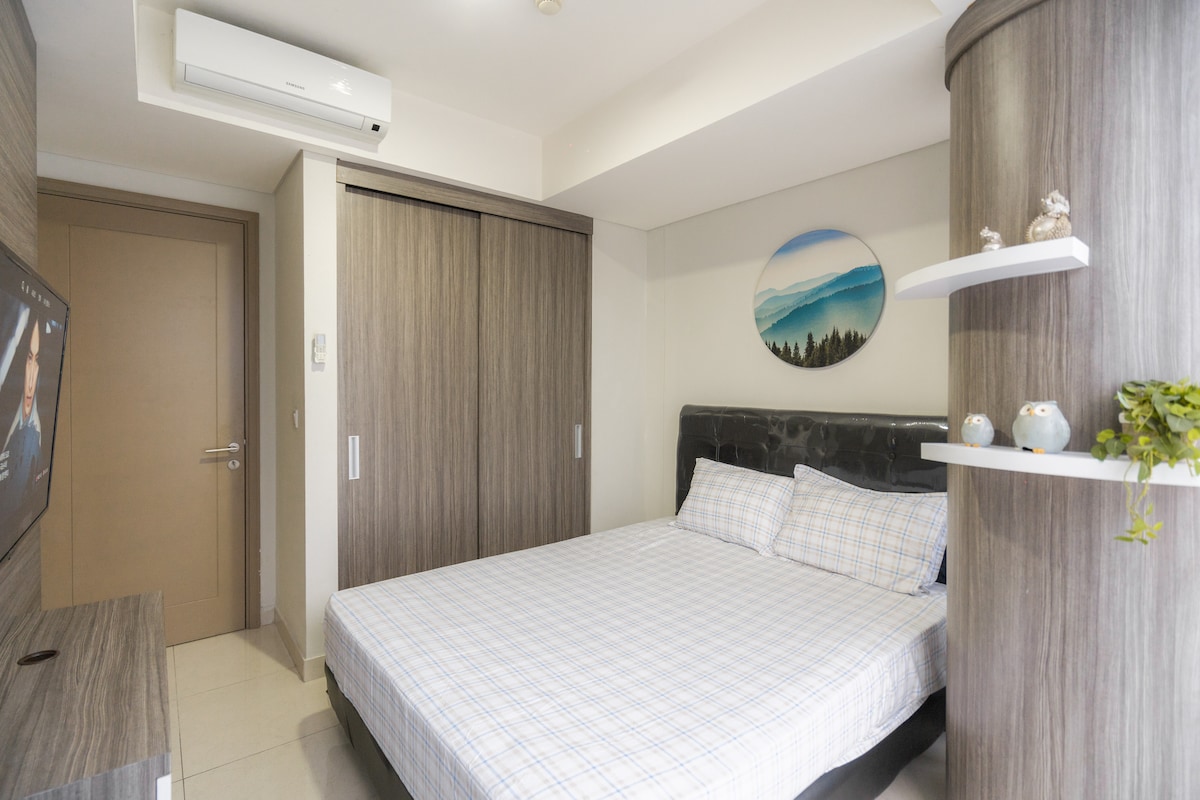 Հանգիստ օազիսում, որտեղ մաքուր գծերը, բնական նյութերը և ներդաշնակ գունային ներկապնակը ստեղծում են խաղաղության զգացողություն ։ Այս մտածված դիզայնով Airbnb - ն պարզության և ֆունկցիոնալության ապաստարան է, որն առաջարկում է խաղաղ փախուստ քաղաքային եռուզեռից ։ Կենտրոնական պարկ մոլից անմիջականորեն մուտք գործելով ՝ դուք ընդամենը մի քանի քայլ հեռավորության վրա եք գնումների, ճաշելու և զվարճանքների աշխարհից ։ Անկախ այն բանից ՝ գնումներ կատարելու տրամադրություն ունեք, թե զբոսնում եք Ջակարտայի ակվարիումում, ամեն ինչ ձեր շեմին է ։